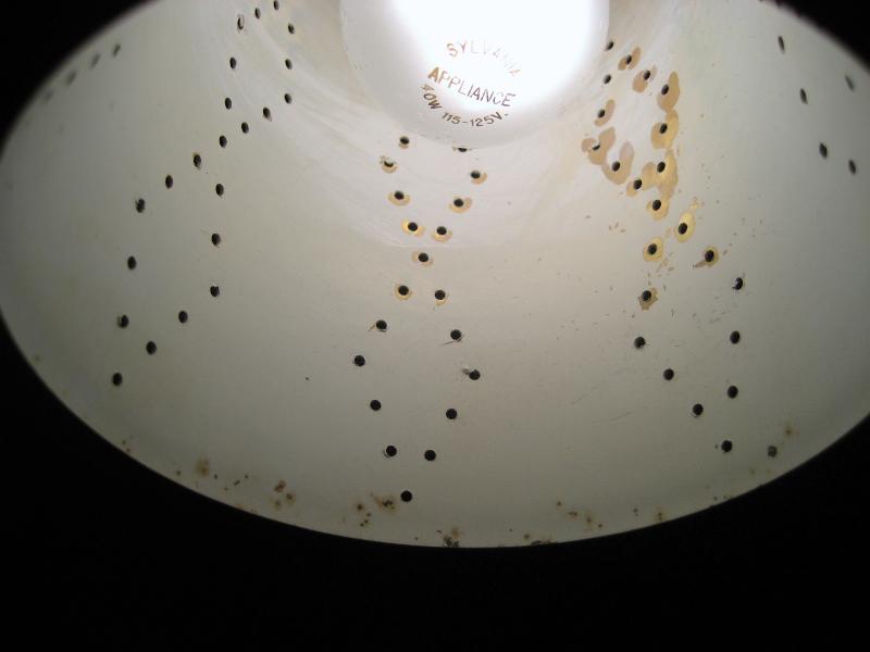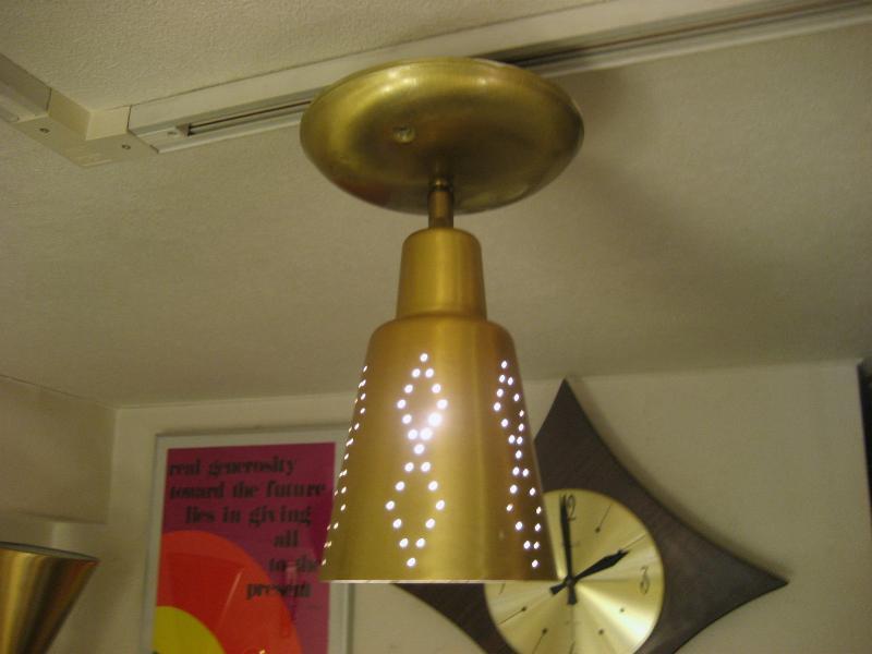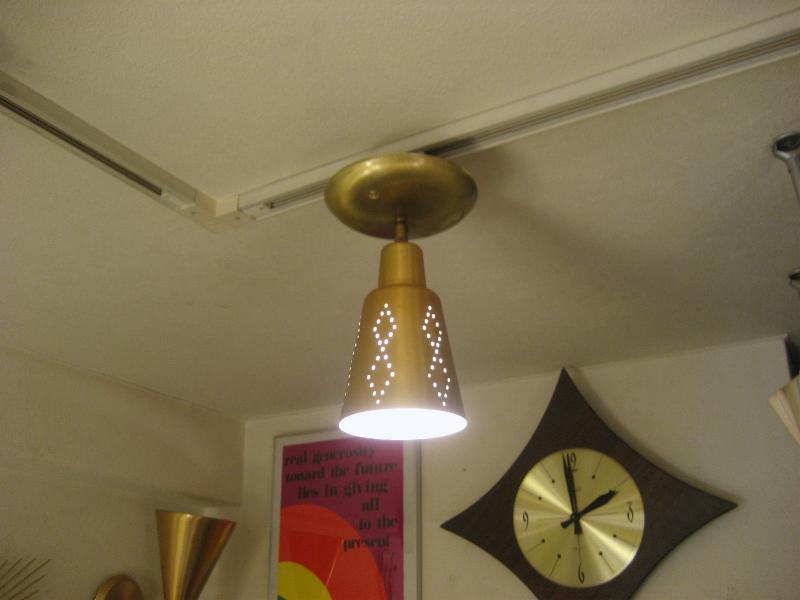 | ビンテージアトミックスポットランプ / 50-60年代 USA 天井シーリングのビンテージスポットランプ。シェード付け根部分(ネック)が可動しますのでいろいろな方向にセッティング可。シェード側面のダイヤデザインホールからもれる明かりがクールでGOODなビンテージライティングピース! スプートニクともGOODマッチング、玄関やセカンド照明としても最高です。 電源は引っ掛けシーリングに交換済みですのですぐに設置可能です。 |