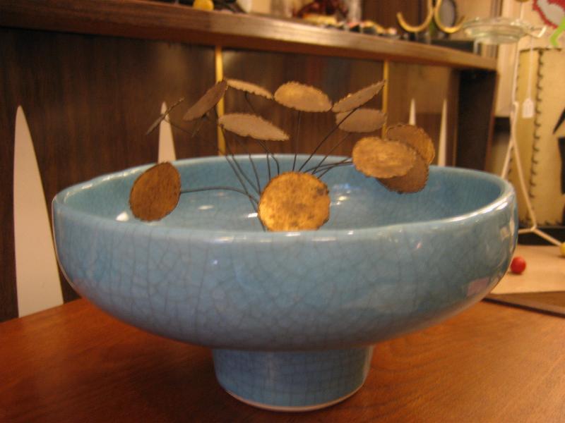 | ビンテージアトミックプランター / 50-60年代 USA 陶器製のビンテージベース。スペーシーなUFOシェイプデザインでカラーはターコイズブルー。テーブルトップやシェルフトップにクールでGOODなビンテージデコレーションピース! |