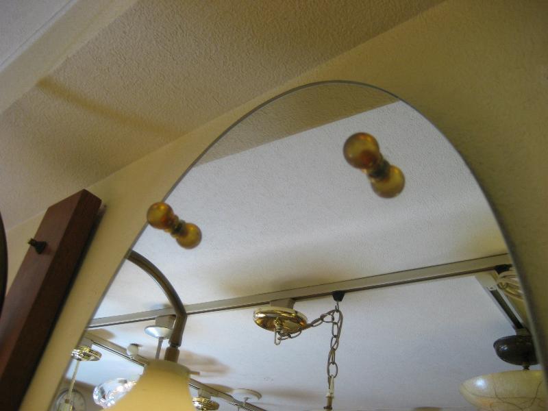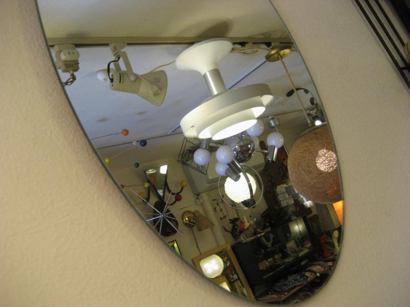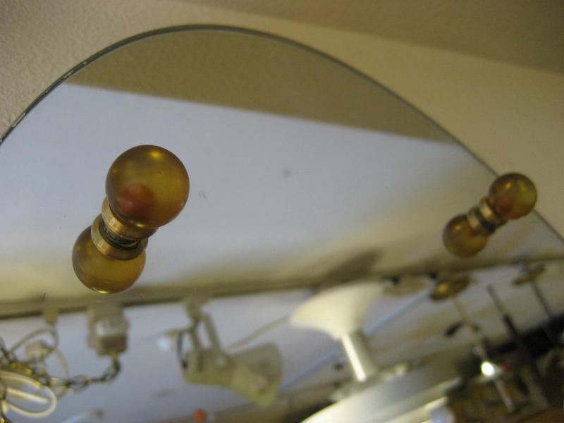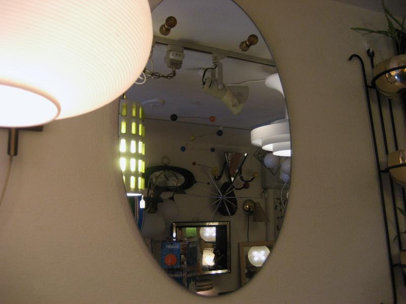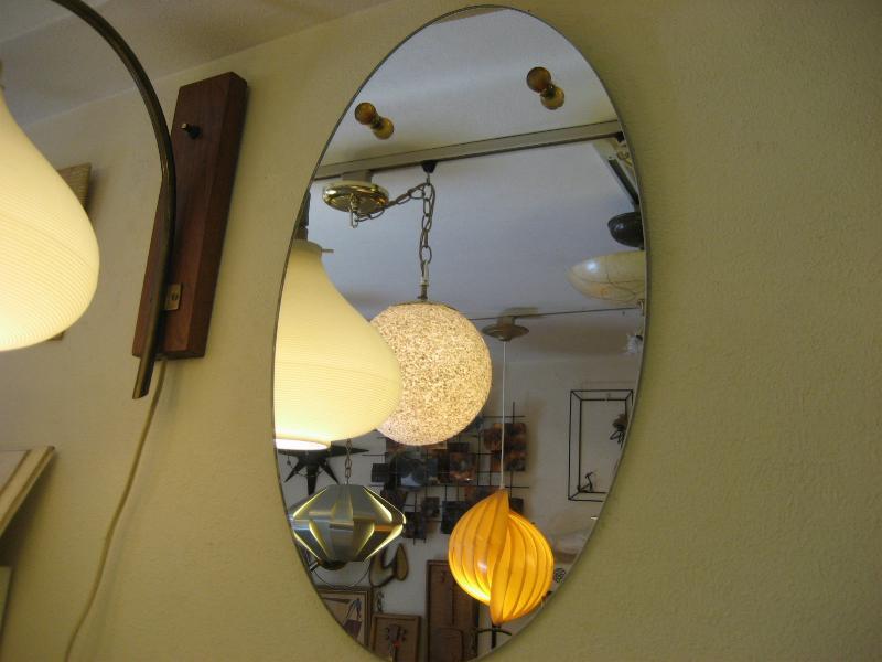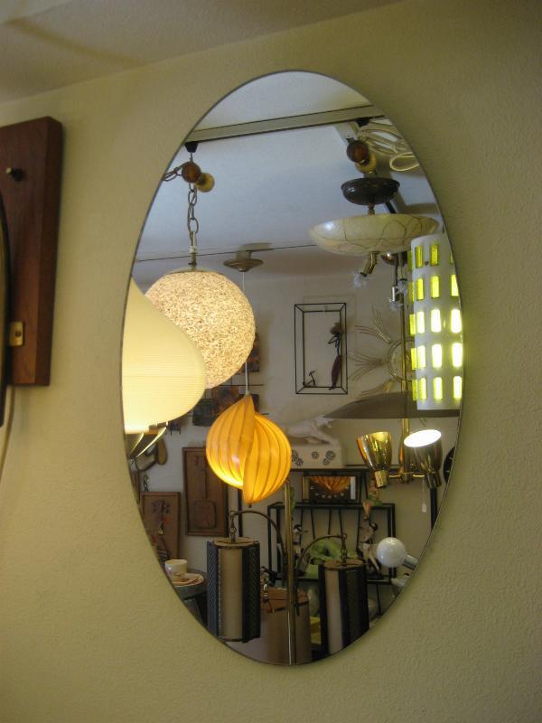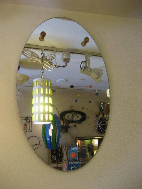 | ビンテージアトミックウォールミラー / 50-60年代 USA. オーバルシェイプのモダンなビンテージミラー。ブラウン系のガラスボールとブラスリングアクセント。玄関やお部屋のアクセントインテリアにクールでGOODなビンテージウォールピース! |