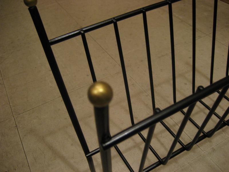 | ビンテージアトミックマガジンラック / 50-60年代 USA ブラックアイアンのマガジンラック。レッグとトップにゴールドボールアクセント。チェアやソファサイド、テーブルサイドなどにクールでGOODなビンテージフロアピース! |