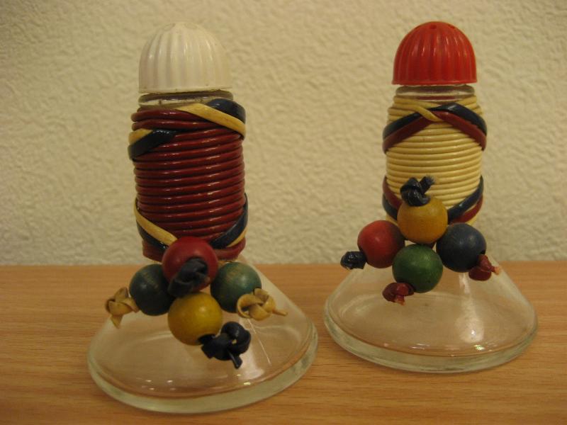 | ビンテージパイレックスシェーカーシリーズ / 20-30年代 USA. For WEICO. "PYREX" コレクターズガイドに紹介されているネック部分のウッドビーズデコが特徴のシェーカーシリーズ。モダンなデザインですので飾っても素敵なシェーカー。クールでGOODなビンテージテーブルピース! ■WEICOというメーカーのためにパイレックスが提供したアイテムです A : ソルト&ペッパーシェーカー B : ドレッシングやビネガーなどのシェーカーボトル(トレー付) C : ワインなどにも使えるコルクキャップのカラフェに近いシェーカーボトル |