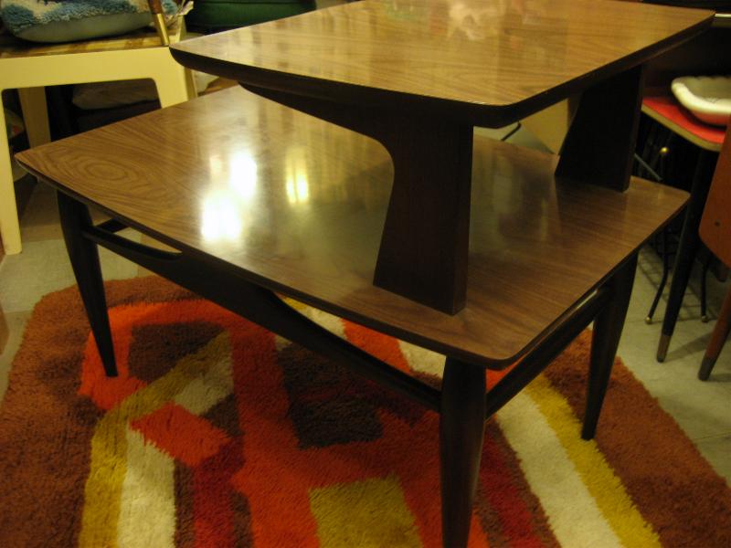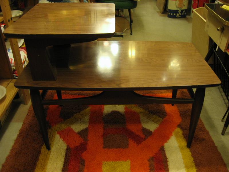 | ビンテージフロアサイドテーブル / 60年代 USA ブラウン木目化粧合板トップにブラウンレッグのビンテージモダンサイドテーブル。メインテーブルとしてはもちろん、コーナーやソファサイドなどにもクールでGOODなビンテージフロアピース! |