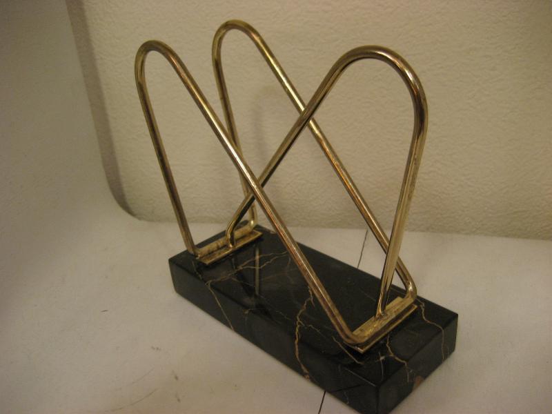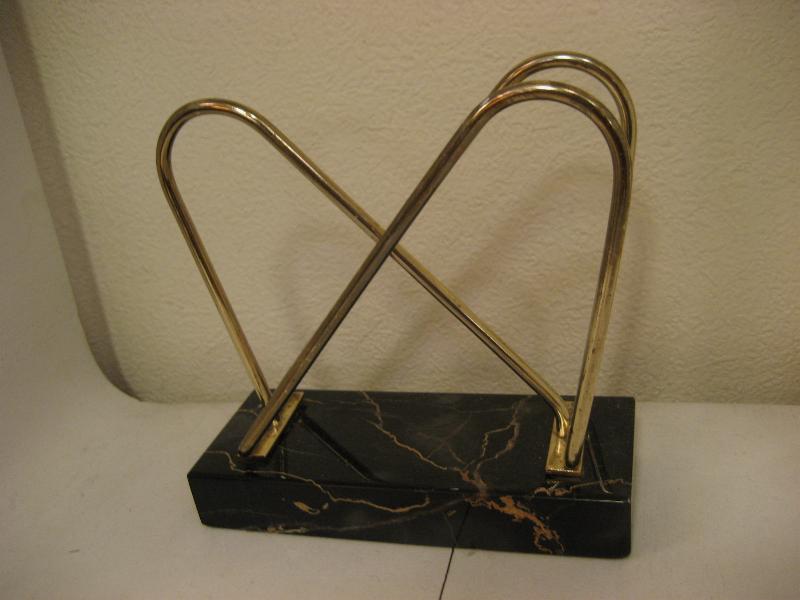| ビンテージアトミックホルダー / 50年代 USA. ブーメランシェイプのブラスホルダーにマーブルベースのクールなペーパーホルダー。ポストカードや封書などのストックにもお勧めです。ブラックベースのマーブルストーンにゴールドブラスメイドのワイヤー。クールでGOODなビンテージピース! |