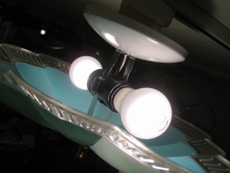 | ビンテージアトミックシーリングランプ / 50-60年代 USA プラスチックメイドのアトミックシェイプシェードにダブルライトソケットの天井シーリングランプ。メイン照明はもちろん、アクセント照明としてもクールでGOODなビンテージライティングピース! 電源は引っ掛けシーリングに交換済みですのですぐに設置可能です。 |