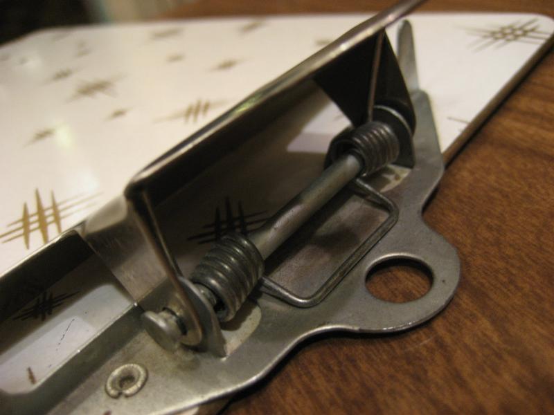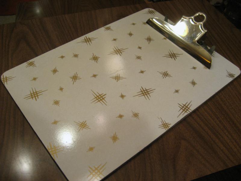 | ビンテージアトミッククリップボード / 50-60年代 USA. アトミックなスターバーストプリントのビンテージクリップボード。ラージサイズのクリップがボードにカシメてあり、ファイルやペーパーなどなどを手軽にクリップ! そのまま壁にも掛けられるフックホールも付いていてなかなか便利なアイテム。なんか昔懐かしい感じのクールでGOODなビンテージレアピース! |