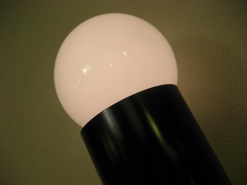 | ビンテージテーブルランプ / 50-60年代 USA. ブラックメタルメイドのシリンダーシェイプベースにボール球タイプのバルブがクールなビンテージアクセントランプ。間接照明におススメのクールでGOODなビンテージライティングピース! 電源は家庭用コンセント対応コード。スイッチはコード中間に付いていてロータリータイプ。 |