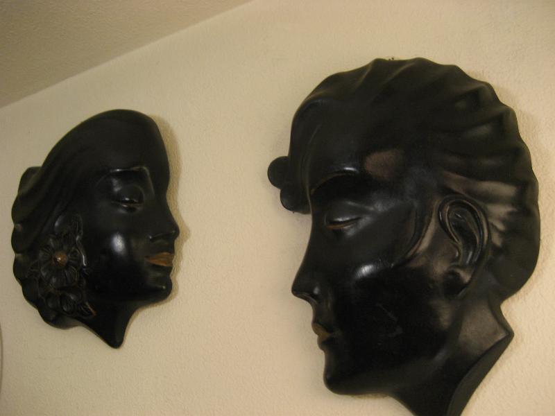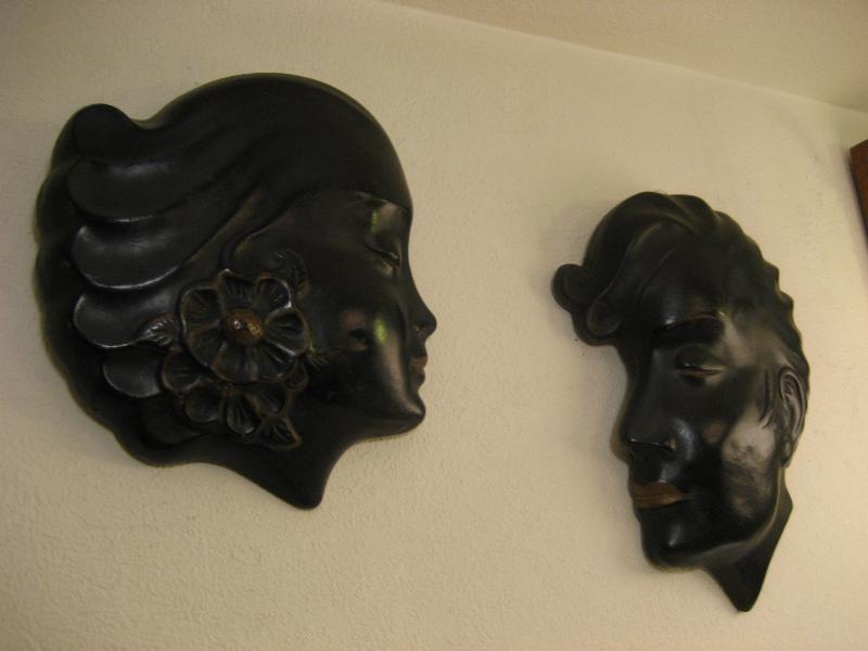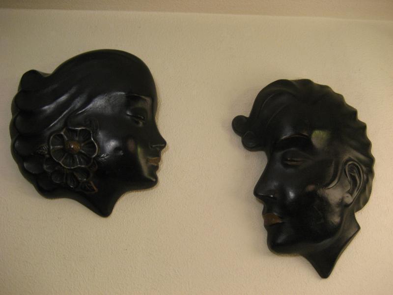 | ビンテージロカビリーウォールデコ / 50年代 USA 50's男女のフェイスウォールデコペア。チョークメイドでブラックベースに部分的なゴールドアクセントカラー。横顔がカッコイイクールでGOODなビンテージウォールデコレーションピース! |