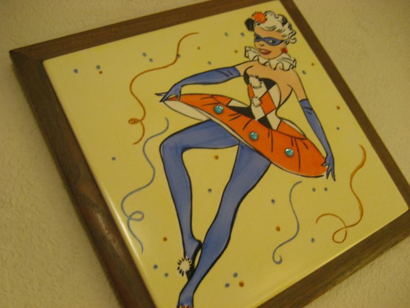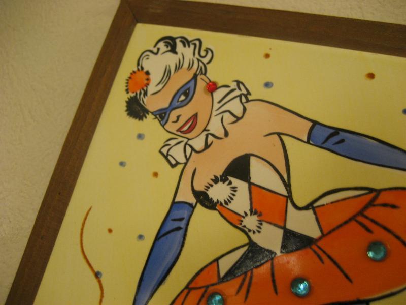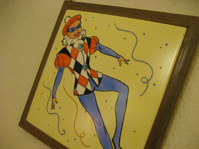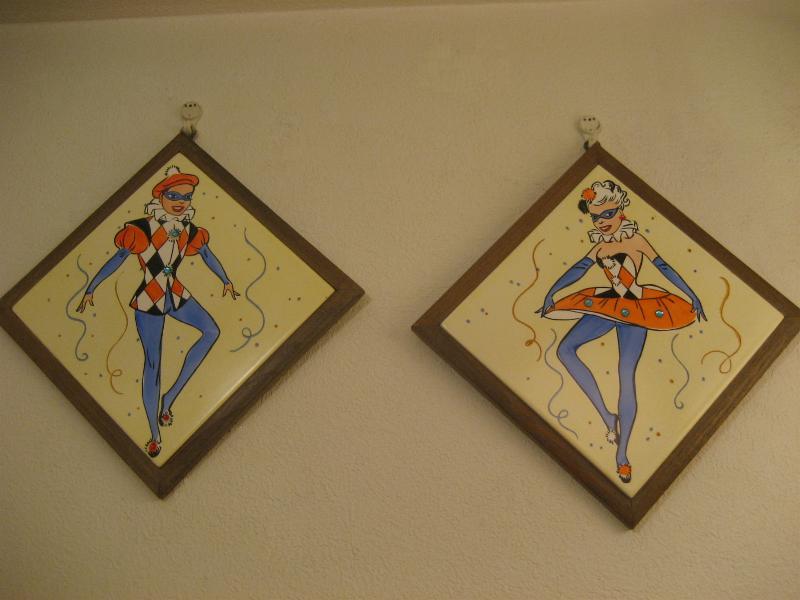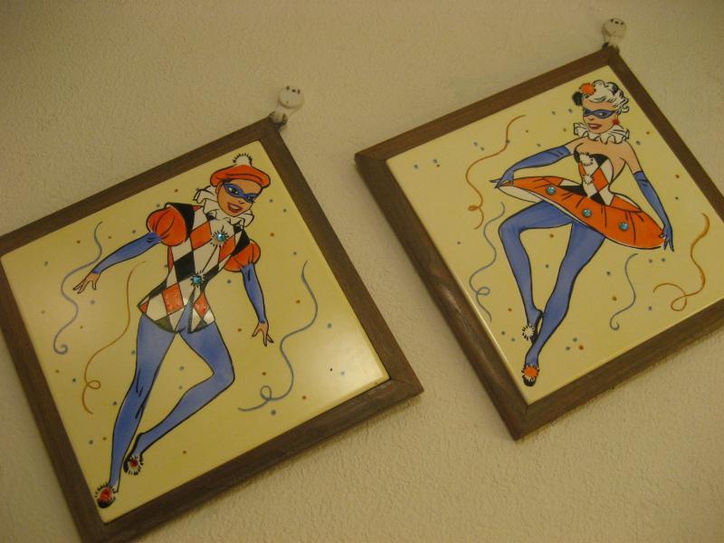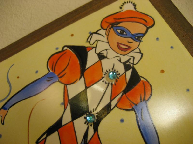 USA. 男女のハーレクインダンサーがタイル状のパネルにペイントされている壁掛けです。ウッドフレームにラインストーンデコがクール&キュートでGOODなビンテージウォールデコレーションピース! |