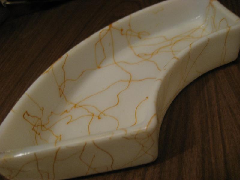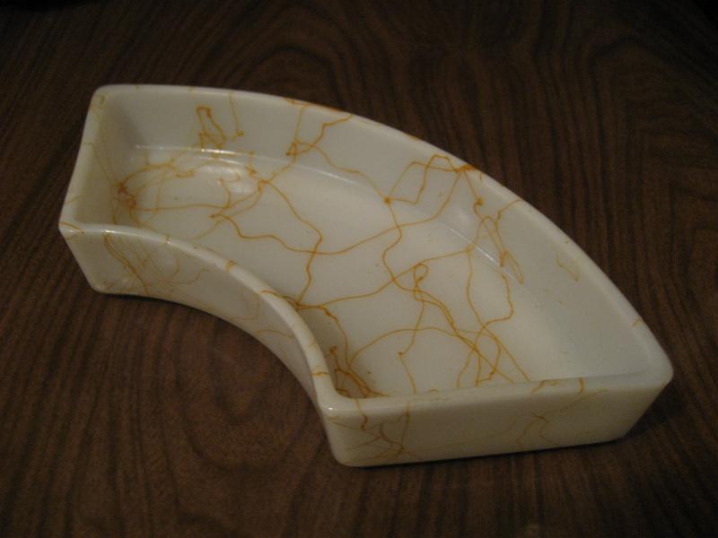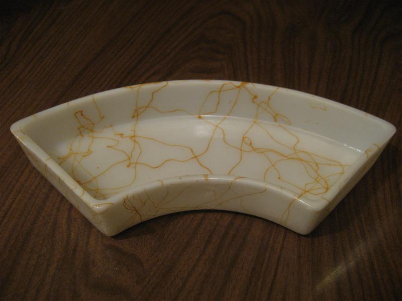 | ビンテージアトミックガラスディッシュ / 50年代 USA ミルクガラスメイドのビンテージディッシュ。ホワイトガラスにゴールドドレーピングアクセント。小物入れやディスプレイにもクールでGOODなビンテージコレクティブルピース! |
