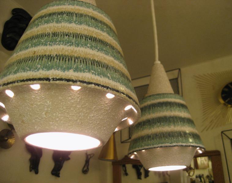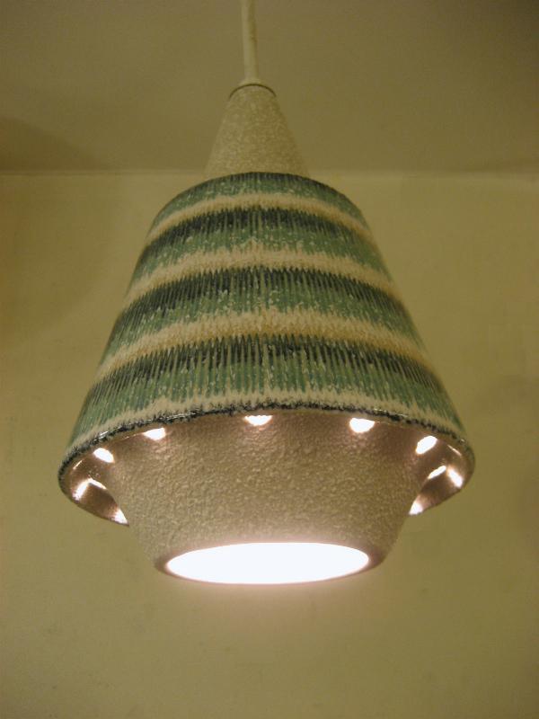 | ビンテージシーリングランプ / 50-60年代 USA 陶器製シェードタイプのシーリングランプ。ダイニングテーブルやカウンターの照明としても良いですし、それぞれ別なポジションでアクセントランプとしてもクールでGOODなビンテージライティングピース! 電源は引っ掛けシーリングに交換済みですのですぐに設置可能です。 ■在庫数:1点 |