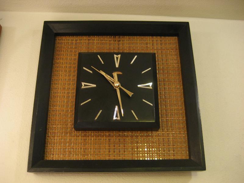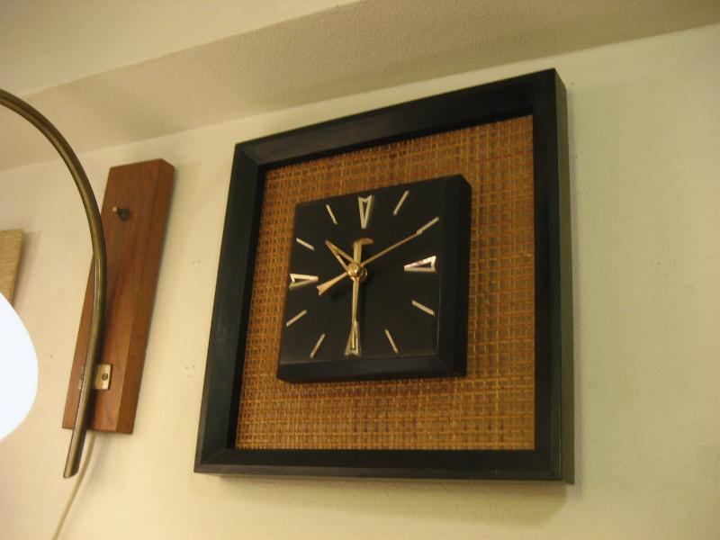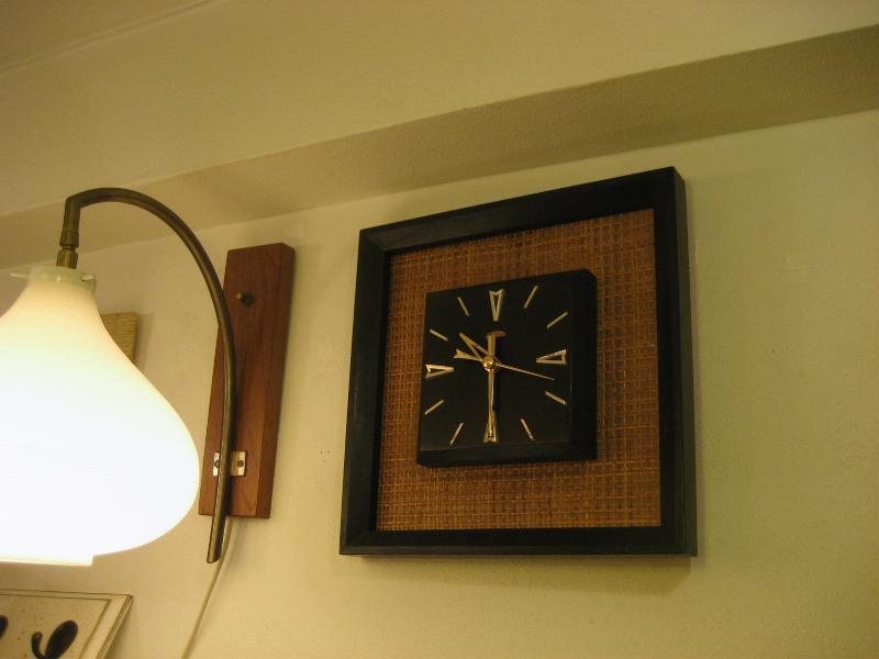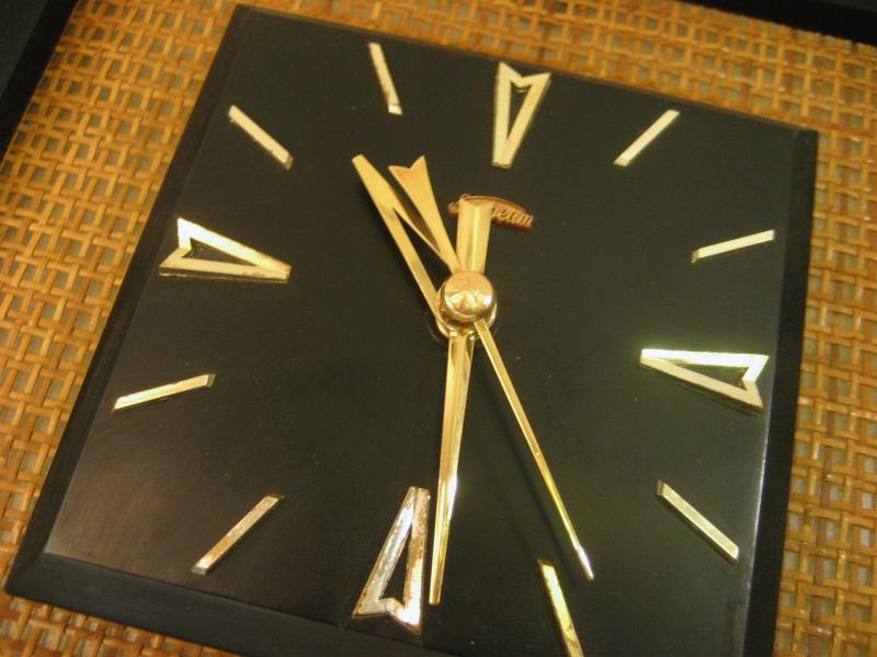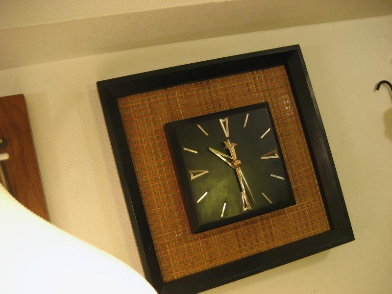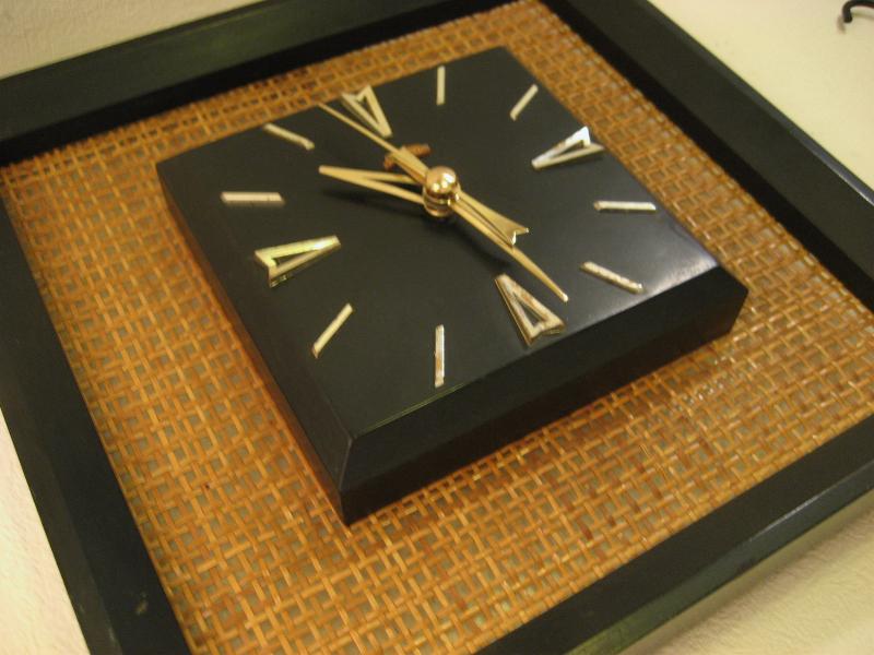 | ビンテージウォールクロック / 50-60年代 Sunbeam, MADE IN USA. ブラックカラーのウッドフレームにバーラップパネルのビンテージ壁掛け時計。文字盤は同じくブラックカラーのウッドメイドでゴールドハンド&ゴールドダイヤルアクセント。クールでGOODなビンテージタイムピース! ムーブメントはバッテリータイプ(単3x1個使用)に交換済みですので時間は正確です。 |