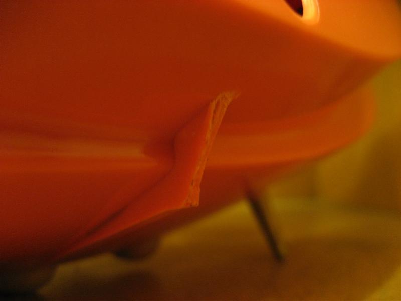 | 特に目立つようなダメージなどはありませんが、プラスチックボディですので多少のスレや小キズ程度は見られます。レッグの後ろ側のツメが折れていますがスタンド状態に問題ありません(写真右下参照)。フロントカバーのツメが折れていてカバーが少しはずれ安い状態ですが特に問題ありません。全体的に良いビンテージコンディションです。 | |