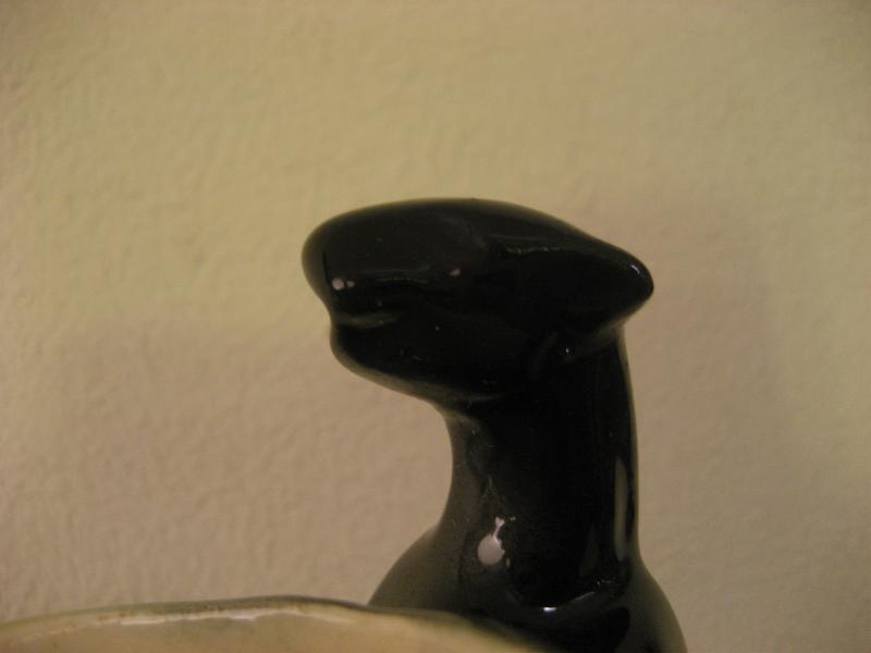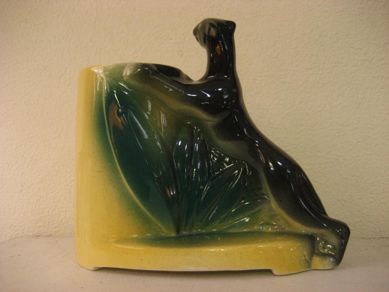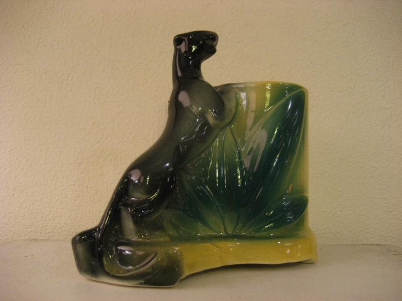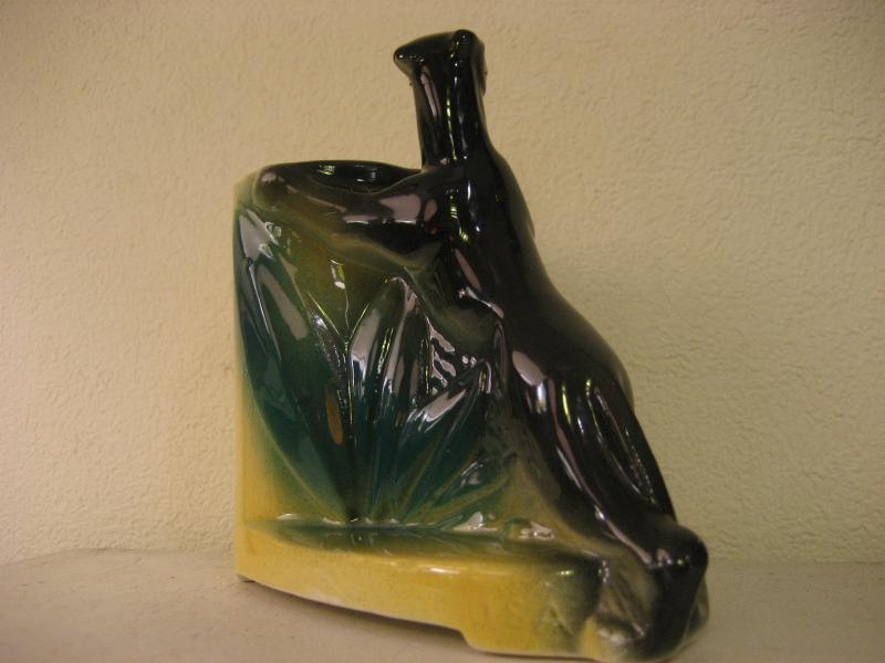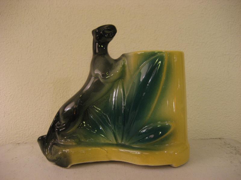 | ビンテージブラックパンサープランター / 40-50年代 USA. おそらくカリフォルニア陶器メイドの黒豹プランター(フラワーベース)。オリエンタルイエローベースに黒豹とグリーンリーフデコ。サイド下部に"USA"の刻印。ディスプレイにもクールでGOODなビンテージデコレーションピース! |