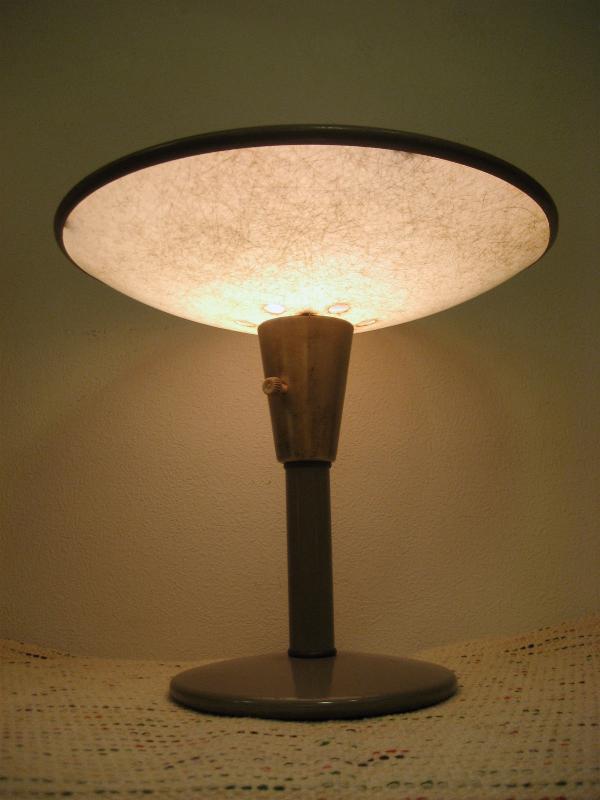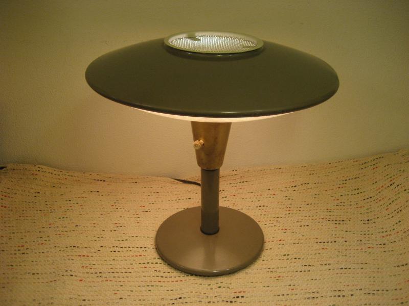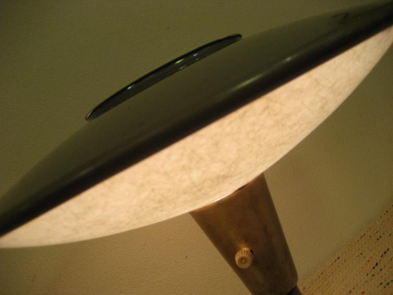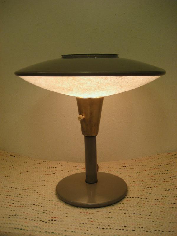 | ビンテージアトミックテーブルランプ / 50年代 DAZOR MFG. CORP, USA. UFOシェイプのクールなミッドセンチュリーテーブルランプ。ベースとトップはメタルメイドでトップシェードの下側がファイバーグラスシェードになっています。クールでGOODなビンテージライティングピース! 電源は家庭用コンセント対応コード。スイッチはシェード下ロッド側面に付いていてロータリータイプ。 ■DAZOR MFG CORP■ 1938年創業の現存するアメリカのライティングメーカー |