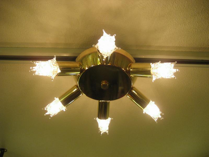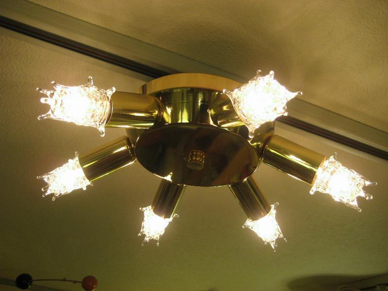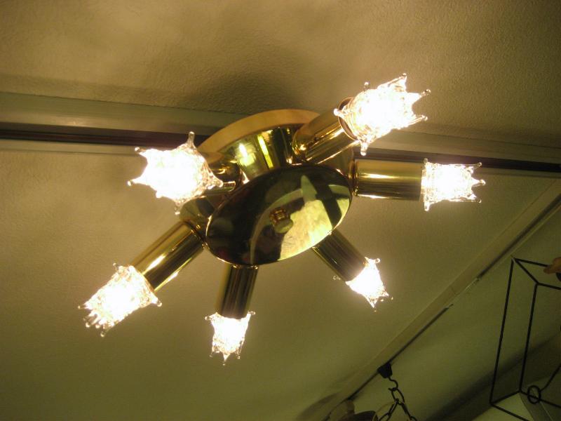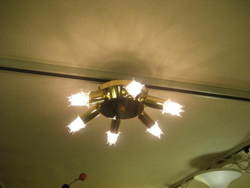 | ビンテージスプートニクランプ / 50年代 USA 6灯タイプ(スター球6個付き) アトミックスプートニクシーリングランプ / シャンデリア UFOシェイプのセンターベースから6発のビンテージスプートニク。クールでGOODなスーパーライティングピース、お部屋の雰囲気一発で変わります! 電源は家庭用引っ掛けシーリングに交換済ですのでかんたん設置、すぐに使用できます。 ※スター球は現行品です。 |