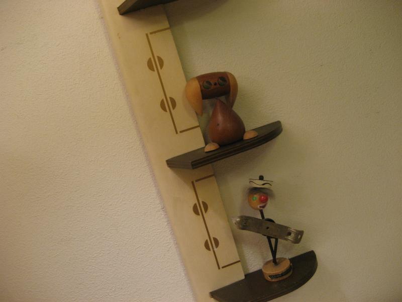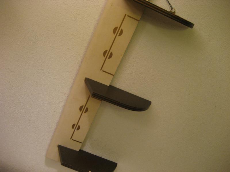 | ビンテージアトミックウォールシェルフ / 50-60年代 USA シェルフ間にゴールドのアトミックな絵柄が入ったビンテージ壁掛け飾り棚。3段の縦型ウォールシェルフで、アイボリーにゴールドプリント、ダークブラウンシェルフ。小物などのディスプレイにクールでGOODなビンテージウォールピース! |