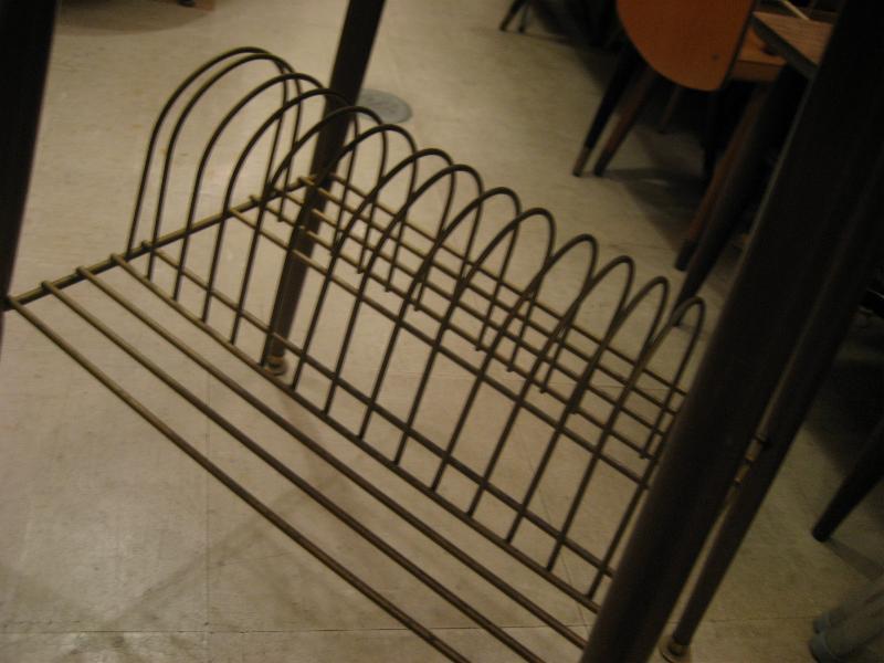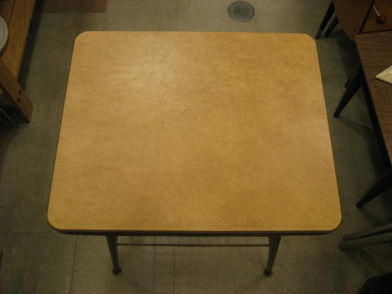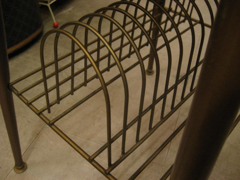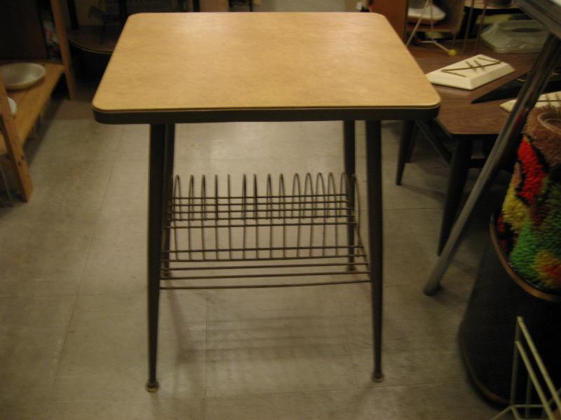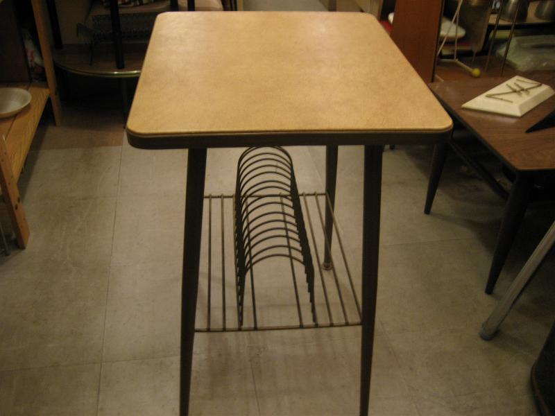 | ビンテージアトミックテーブル / 50-60年代 USA. レコードラックが下に付いた、ビンテージコーヒーテーブル。ベージュカラーのトップ天板でダークブラウンカラーのメタルエッジモール、ブラウンカラーのアイアンレッグ。レコードラック部分はメタルワイヤーメイド。クールでGOODなビンテージフロアピース! |