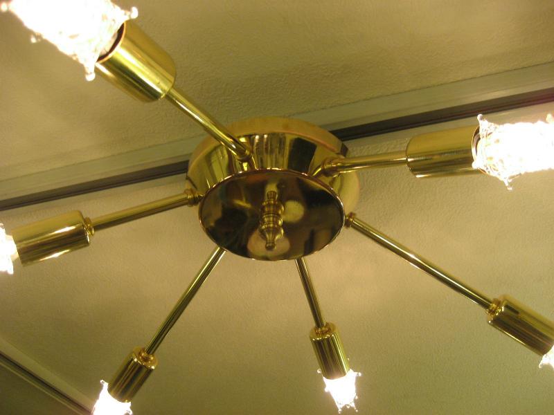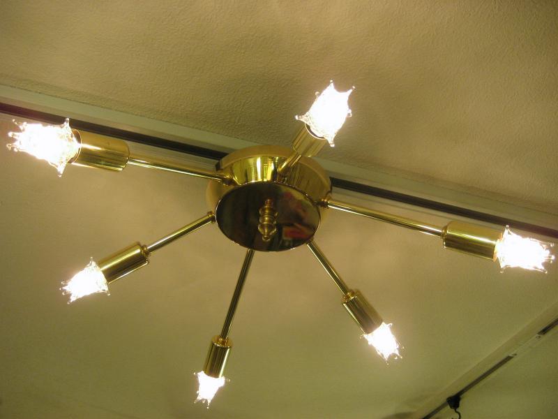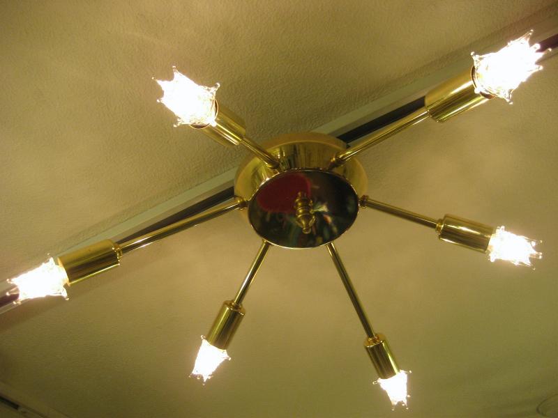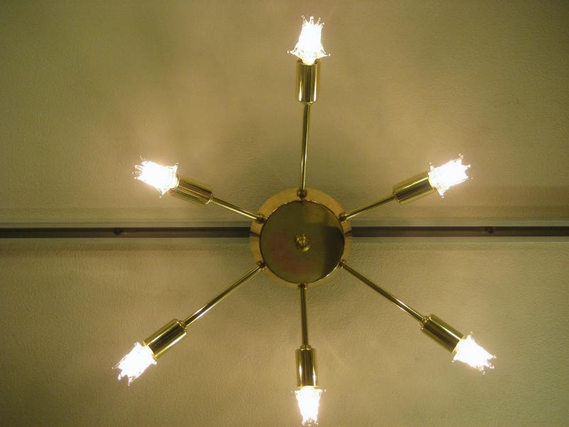 | ビンテージスプートニクランプ / 50年代 USA 6灯タイプ(スター球6個付き) アトミックスプートニクシーリングランプ / シャンデリア UFOシェイプのセンターベースから長短アームが6発のビンテージスプートニク。クールでGOODなスーパーライティングピース、お部屋の雰囲気一発で変わります! 電源は家庭用引っ掛けシーリングに交換済ですのでかんたん設置、すぐに使用できます。 ※スター球は現行品です。 |