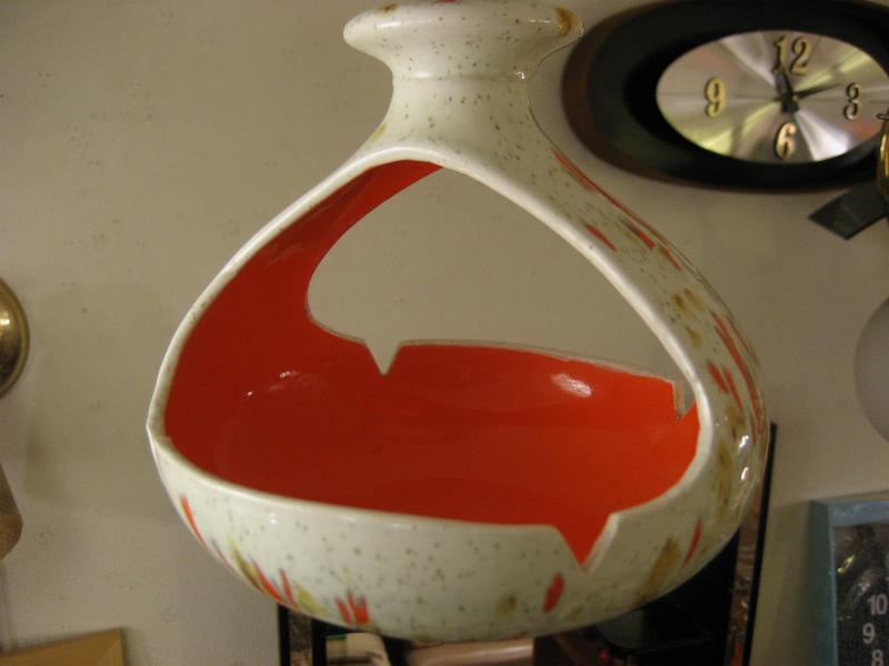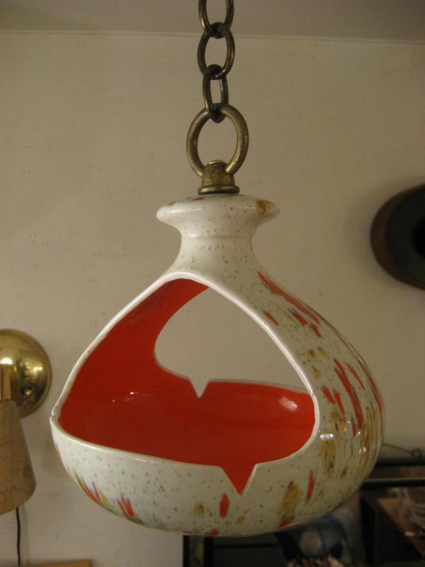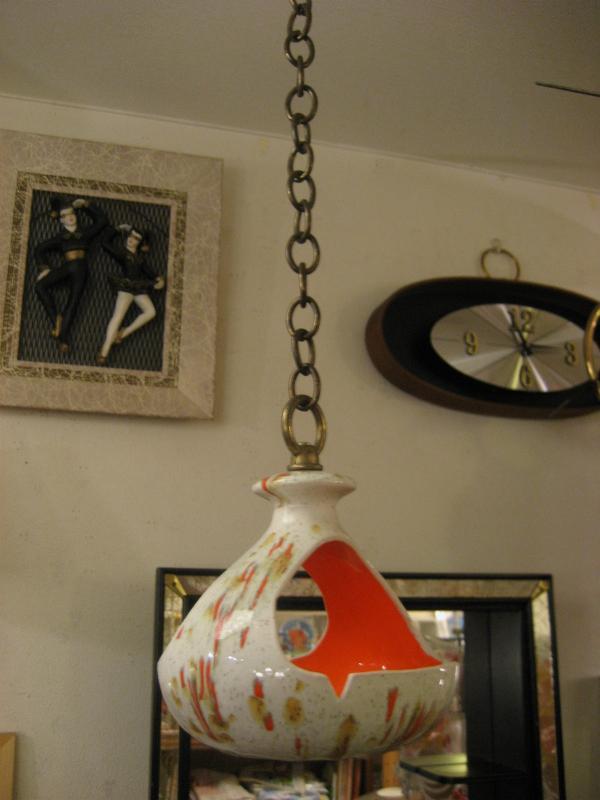 | ビンテージハンギングアッシュトレイポット / 50-60年代 USA 天井シーリングタイプのビンテージ灰皿。陶器製のアトミックシェイプなポットにチェーンシーリング。キャンドルホルダーやプランターとして使用してもクールでGOODなビンテージフローティングピース! |