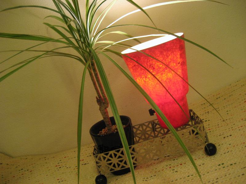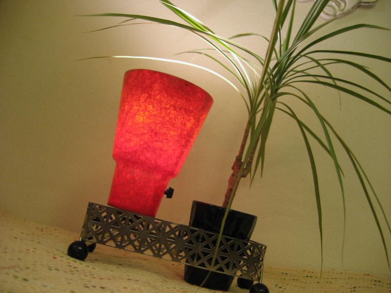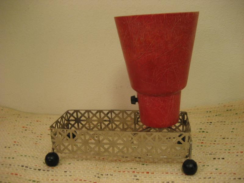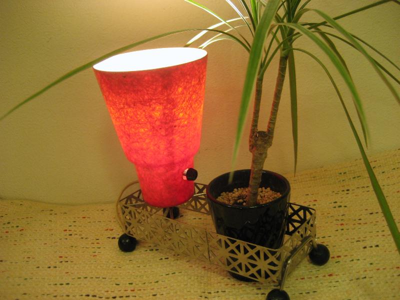 | ビンテージテーブルランプ / 50-60年代 USA. 赤いファイバーグラスメイドのシェードがクールなビンテージテーブルランプ。ベースはメタルメイドでメッシュパネルフレームになっています。写真のようにスモールプランターポットなどを置いてディスプレイに使っても良いのでは。。。 クールでGOODなビンテージピース! 電源は家庭用コンセント対応コードでスイッチはシェード側面に付いていてロータリータイプ。 |