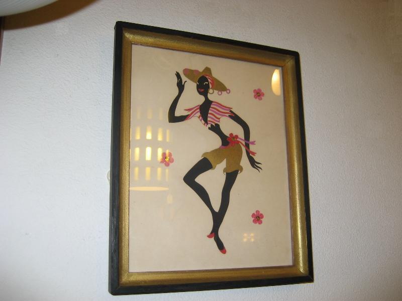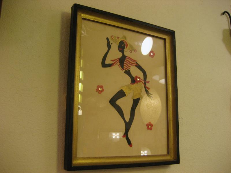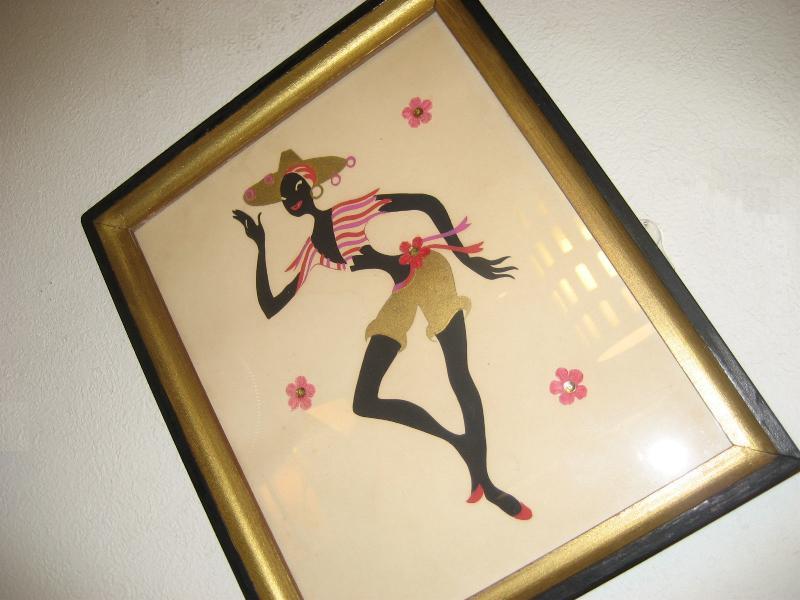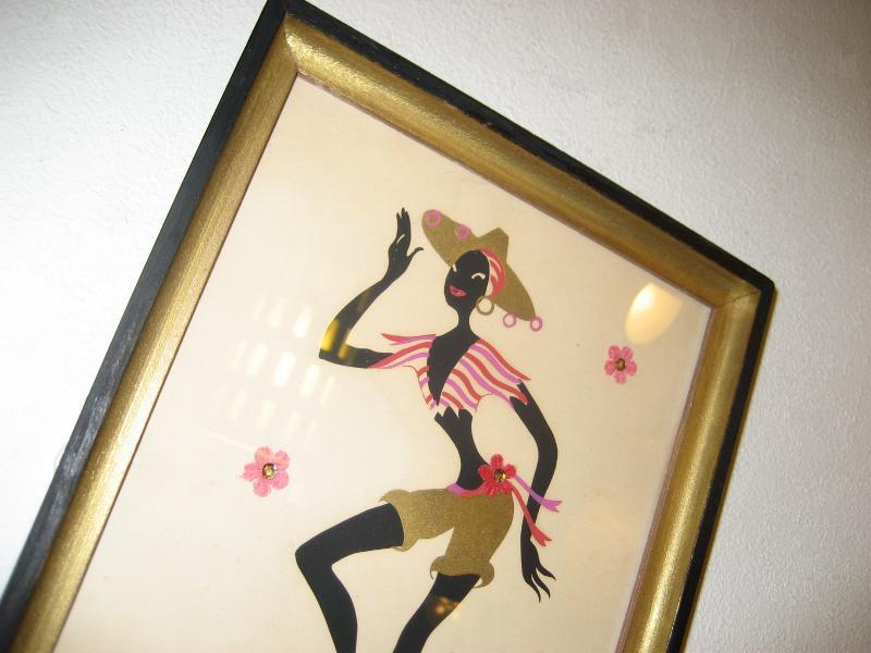 IN USA ウッドメイドの黒金フレームがクールなビンテージフレーム壁掛け。ブラックレディダンサープリントで部分的にスパンコールアクセント(フラワーフェルト)。カリビアンスタイルのクールでGOODなビンテージウォールデコピース! |