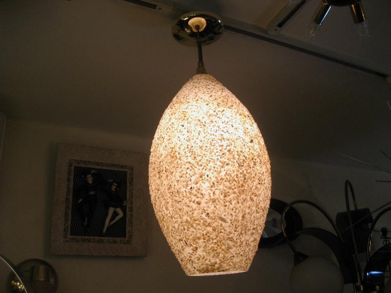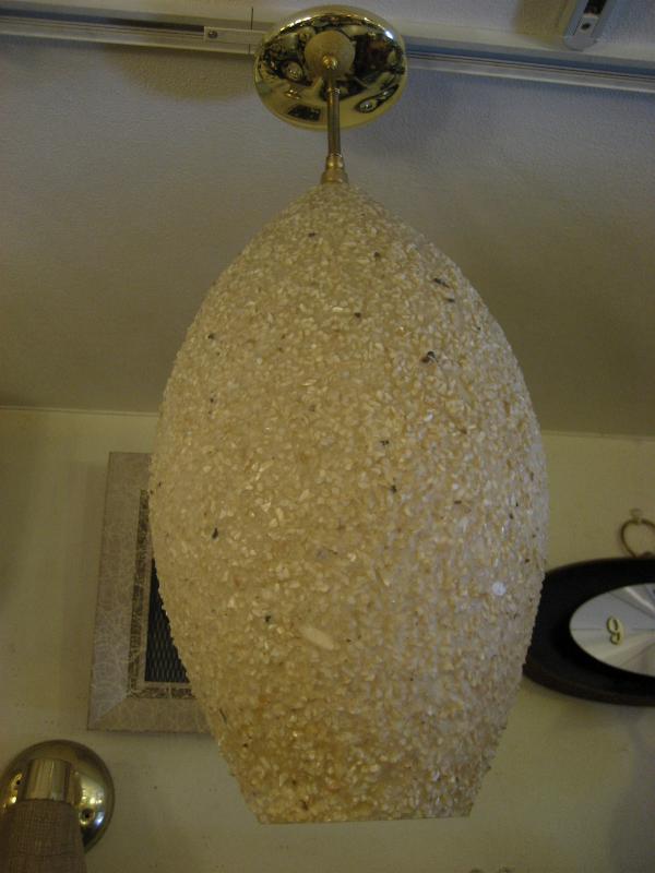| ビンテージアトミックシーリングランプ / 50-60年代 USA. モザイクロックメイドでオーバルシェイプのアトミックなライティング。ブラスメイドのショートシーリングアームで天井からの吊り下げタイプ。ダイニングテーブルやキッチンカウンターアップ、リビング照明はもちろん、玄関やステップ下などのセカンド照明にもおススメ。。。クールでGOODなビンテージライティングピース! 電源は家庭用引掛けシーリングソケットに交換済ですからすぐに設置可能です。 |