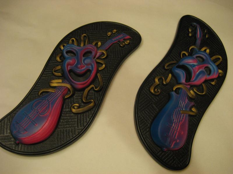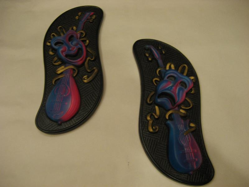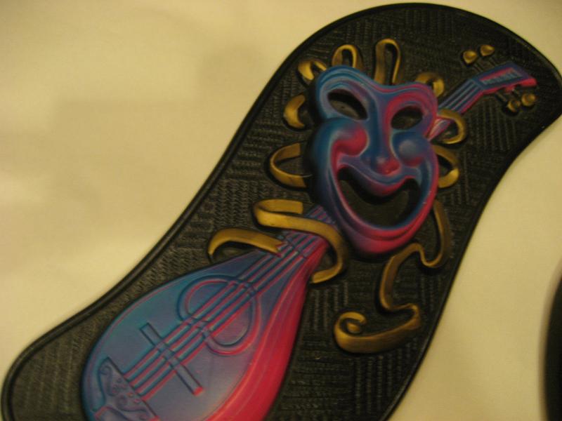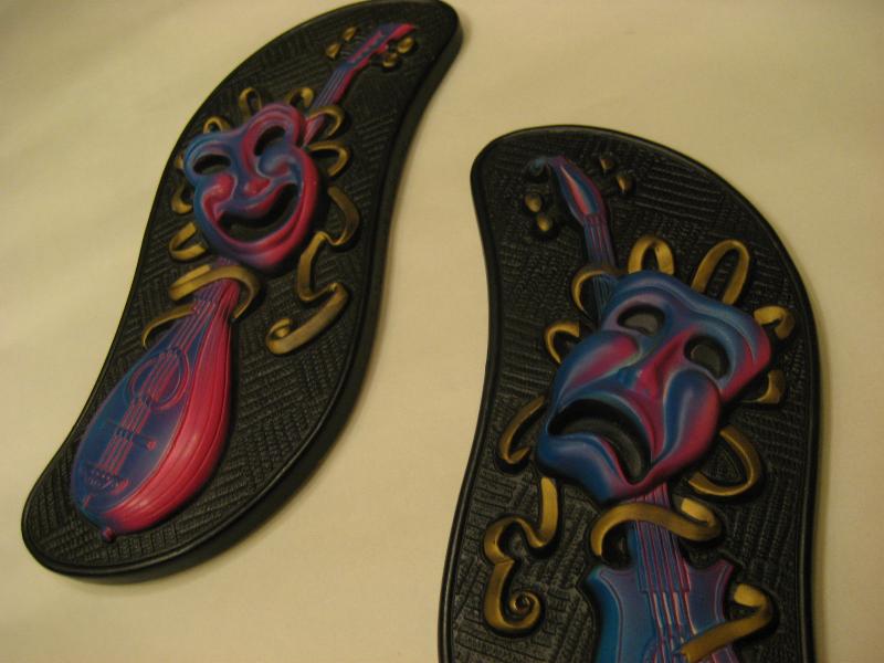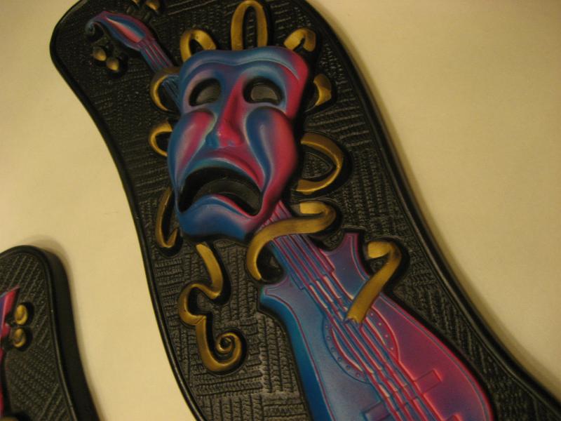 | ビンテージツーフェイスウォールデコ / 70年代 USA ©1970 ミラースタジオ ペアのビンテージ泣き笑い壁掛け。チョークメイドで楽器とフェイスの組み合わせ。クールでGOODなビンテージウォールピース! |