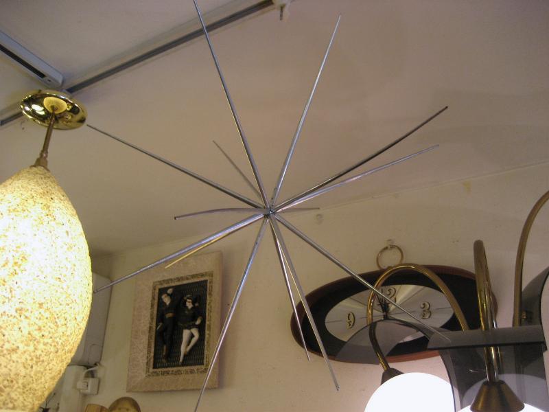 | ビンテージアトミックハンギングデコ / 50-60年代 USA. プラスチックメイドでレアなスプートニクシェイプのビンテージモビールデコレーション。アームは14発で、ピアノ線などを使用して天井から吊下げてディスプレイします。スプートニクやアトミックなライティングにベストマッチングのハンギングデコレーション。クールでGOODなビンテージディスプレイピース! |