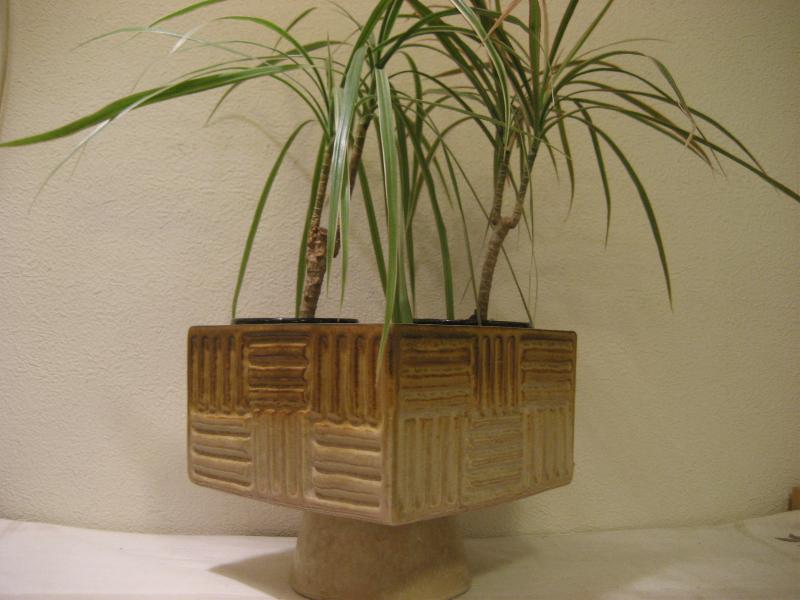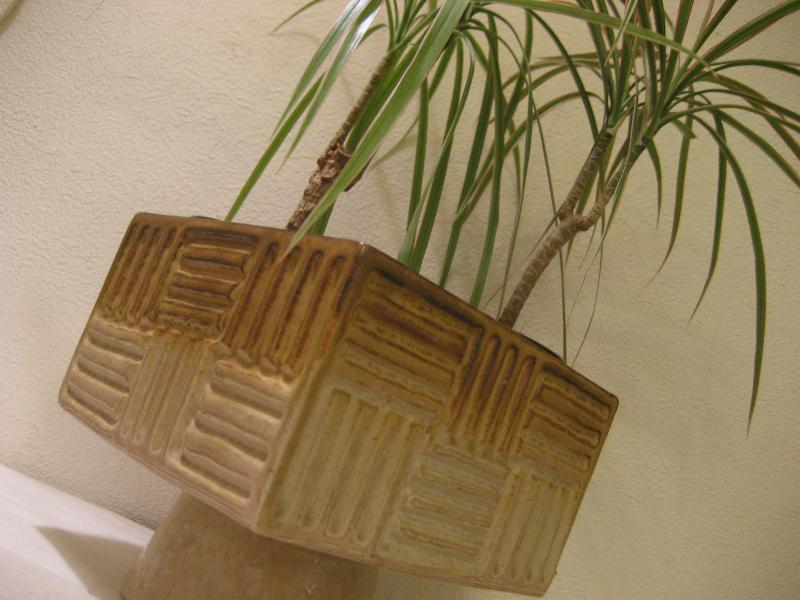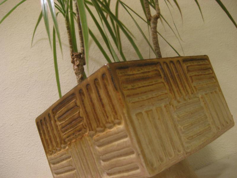 | ビンテージモダンプランター / 60-70年代 USA モダンスクエアシェイプのプラントポットにセンターレッグタイプのビンテージプランターベース。サイド面は凹凸感の強い掘り込みストライプデザイン。カラーリングも落ち着いたアースカラー調で合わせやすくとってもシンプル。クールでGOODなビンテージデコレーションピース! |