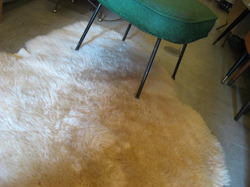 | ビンテージムートンラグマット / 70年代 USA. 暖かくて気持ちいいムートンラグ。フロアで足元暖かも良いし、ソファに引いてオシリ暖かもOK! リビングにモダンでGOODなビンテージアクセントピース! |