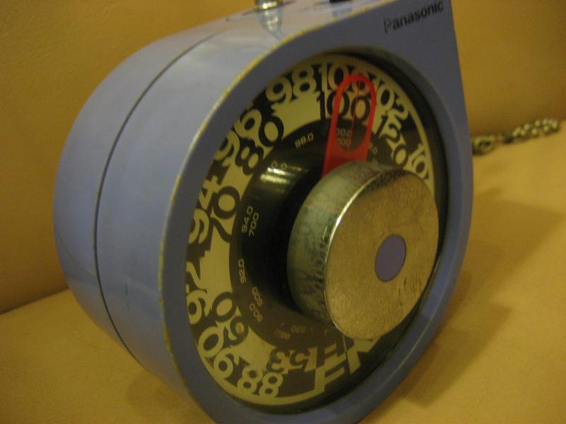 | ビンテージポータブルラジオ / 70年代 Panasonic Model : RF-93 USA "Rolling Tone" RF-93 / パナソニックのアメリカ輸出モデルポータブルラジオ。「ローリングトーン」と呼ばれたまさしくセンターのツマミでチューニングするタイプ。デザインフォルムや周波数ダイヤルの字体・配置などもその時代を反映した雰囲気でとっても良い感じです。。。 ハンギングボールチェーン付。 クールでGOODなビンテージモダンピース! ※単3電池3個使用で動作確認済み。但し、周波数がアメリカ仕様のため、AMがメインになります |