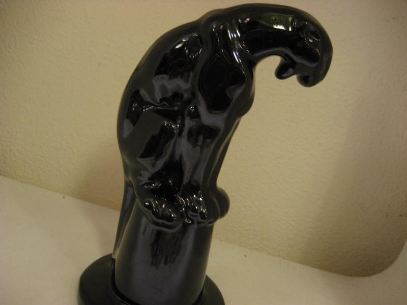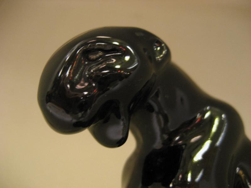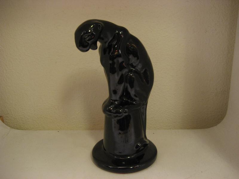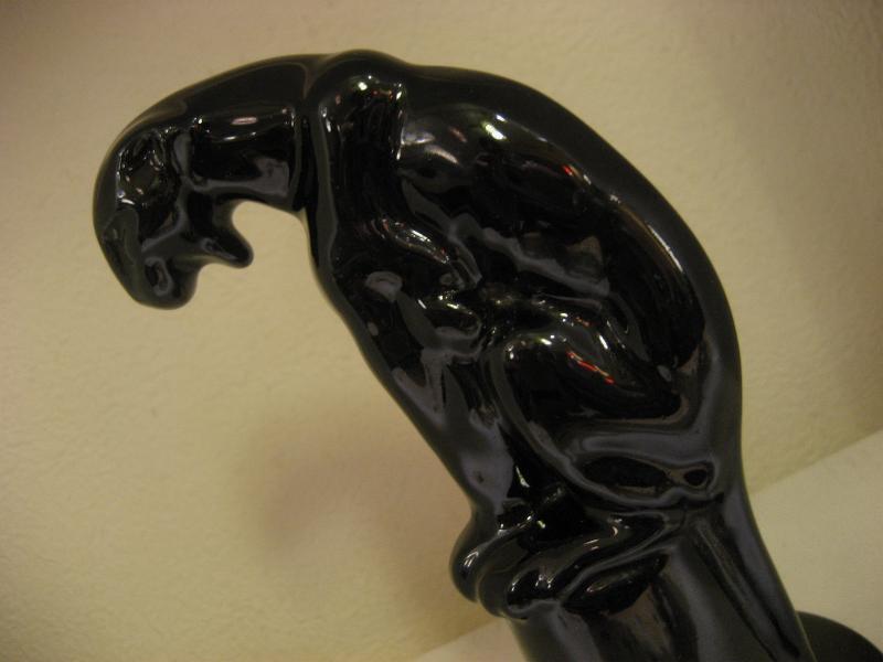 | ビンテージブラックパンサーデコ / 40-50年代 USA. 陶器製のブラックパンサー(黒豹)置物。台座の上に座っているポーズ。底面は赤いフェルト地のボトムフィット。シェルフやテーブルなどのディスプレイにおススメです!クールでGOODなビンテージデコレーションピース! |