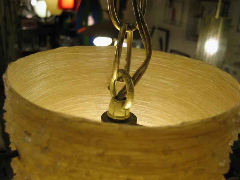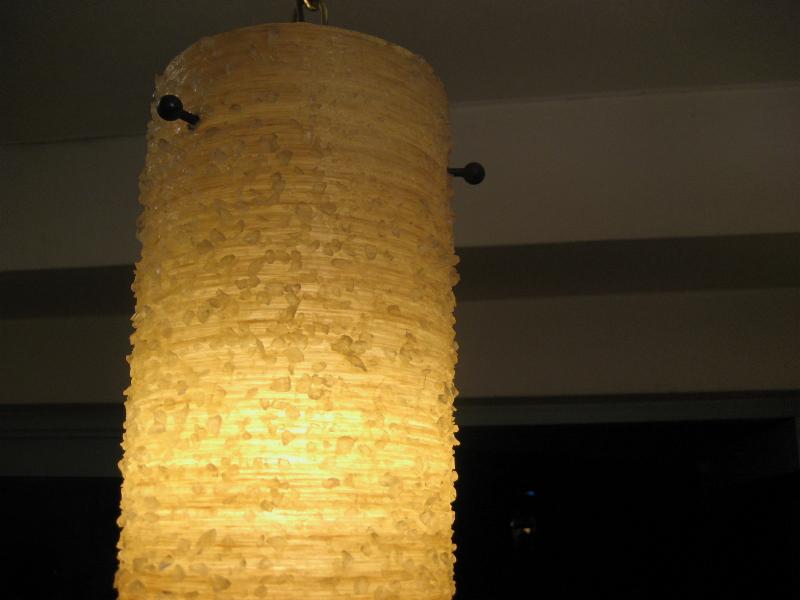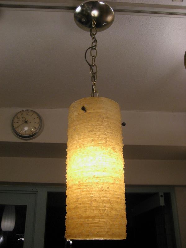 | ビンテージアトミックペンダントランプ / 50-60年代 USA アクリル成型シリンダーシェードのビンテージライティング。シェード表面に同じ素材のロック状の粒がランダムにデコレートされています(砂絵のような感じ・・・) クールでGOODなビンテージライティングピース! 電源は引っ掛けシーリングに交換済みですのですぐに設置可能です。 |