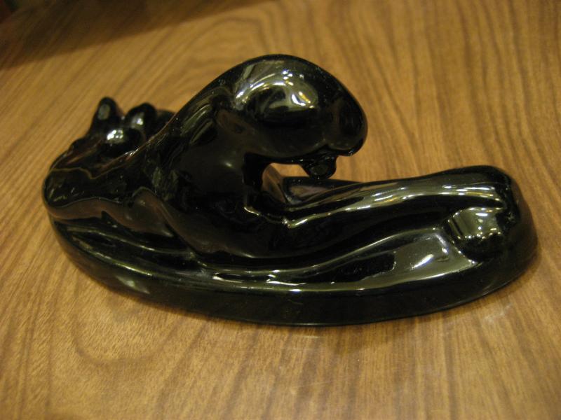 | ビンテージブラックパンサーデコ / 50年代 Royal Haeger, USA 陶器製のパンサー置物です。クールなブーメランシェイプのベースにパンサーが寝そべっているポーズ。底面に刻印がありますが凹凸が薄く判読しにくいです。シェルフやテーブルなどのディスプレイにクールでGOODなビンテージデコレーションピース! |