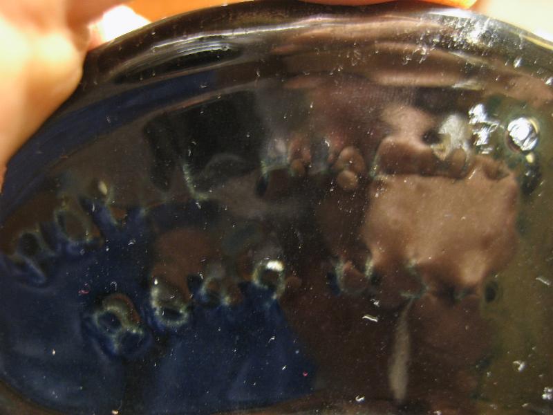 | 底面にカケがありますが、表からはほぼ見えません。光沢もじゅうぶんあり、全体的にきれいで良いビンテージコンディションです。 | |