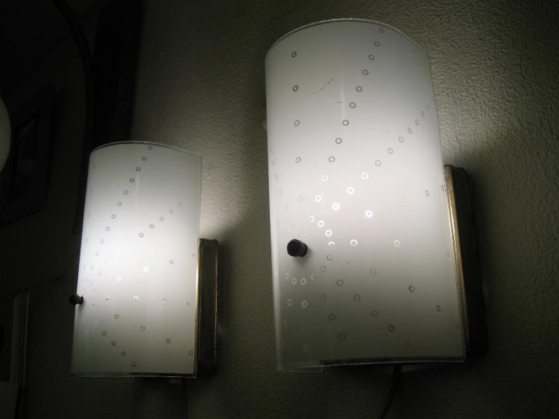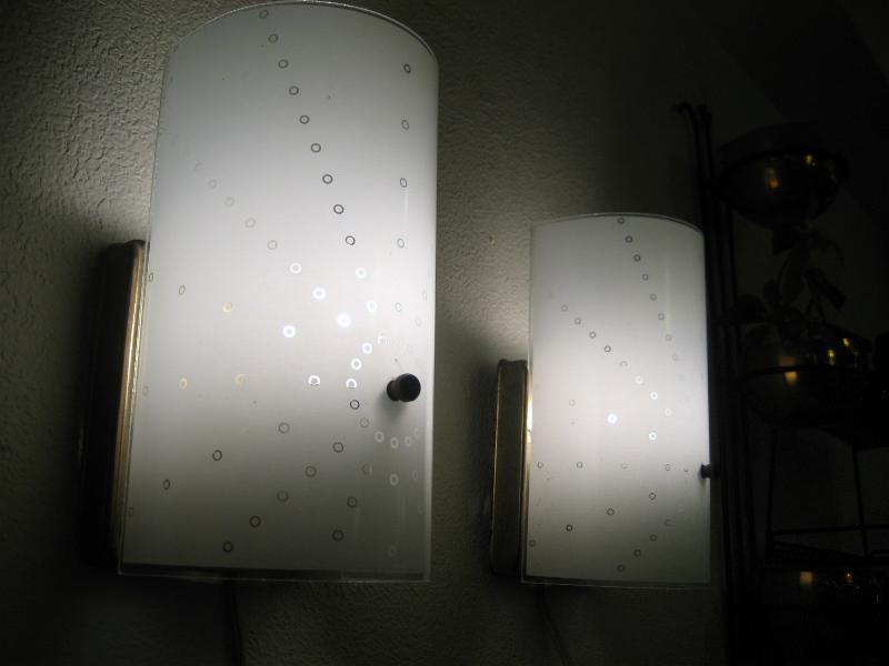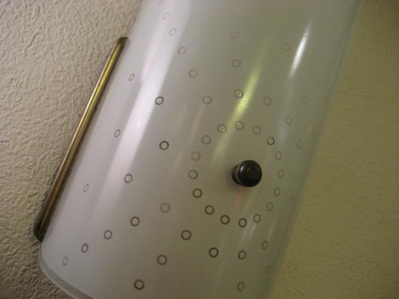 | ビンテージアトミックウォールランプ / 50-60年代 USA ドットスターバースト柄デザインのガラスシェードがクールなビンテージ壁掛けランプ。例えば、バニティ・玄関・廊下・階段・お部屋のアクセントなどなど。。。クールでGOODなビンテージライティングピース! 電源は家庭用コンセント対応コードです。 ※在庫2点あります |