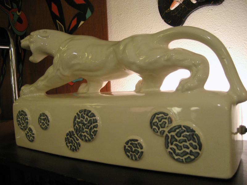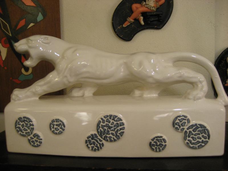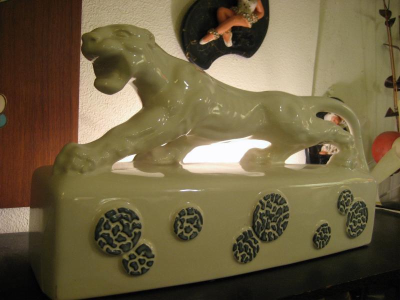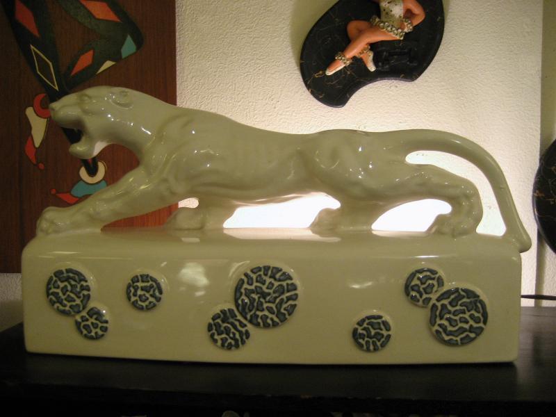| ビンテージパンサー TVランプ / 50年代 Kron, USA Kron社製パンサーTVランプ。 " T.V. Lamp " の本にも載っている50年代を代表するメーカーのひとつ。豹のボディがリアルで顔もクールなGOODデコレーション&ライティングピース! 電源は家庭用コンセント対応で、スイッチはベース側面に付いていてロータリー式です。 |
