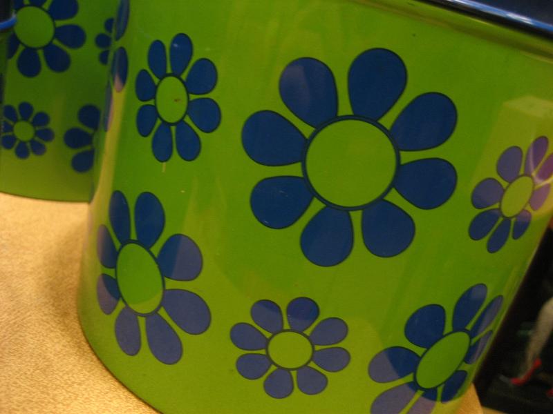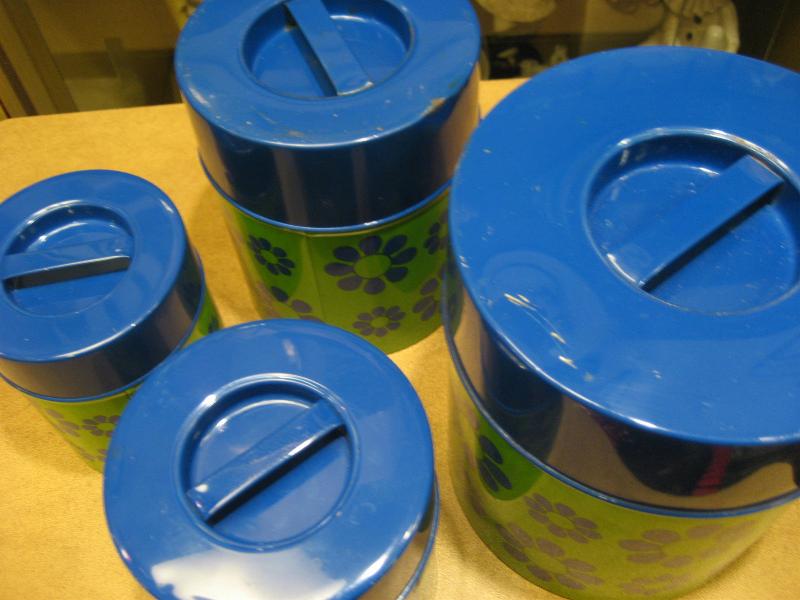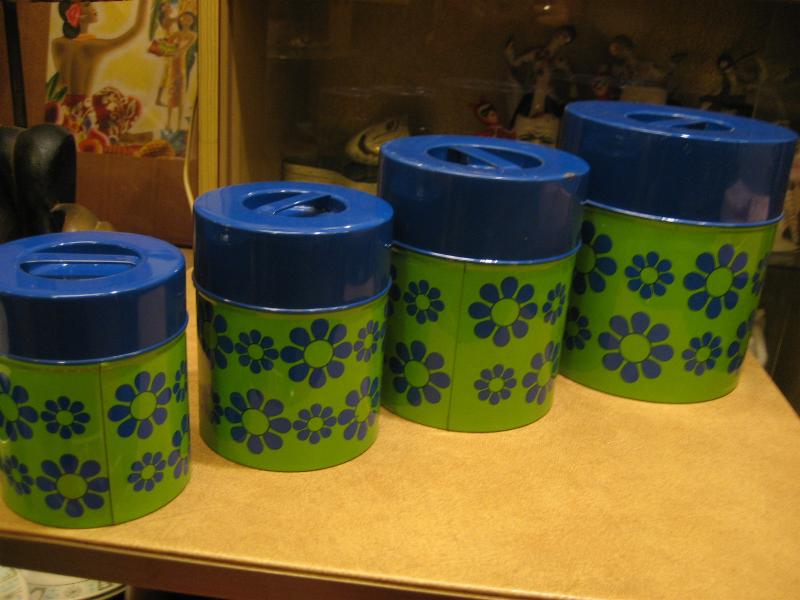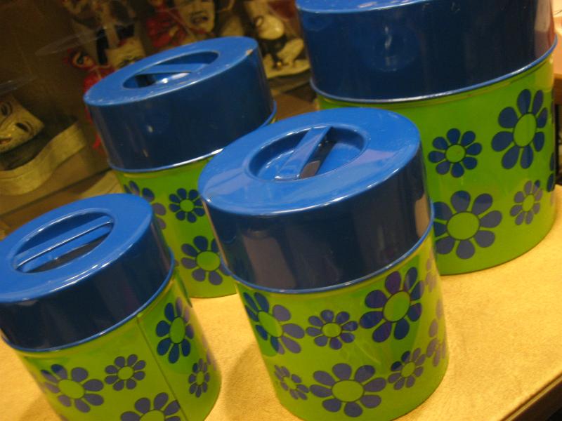 | ビンテージキャニスターセット / 60年代 USA, MADE IN JAPAN. メタルメイドで、モダンフラワープリントがキュートなビンテージキッチンキャニスターセット。カラーはグリーンボディにブルーカバーとフラワープリント。大きなサイズに他3点すべてスッポリ収納OKなのでとっても便利。クールでGOODなビンテージキッチンピース! |