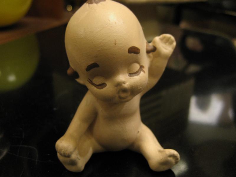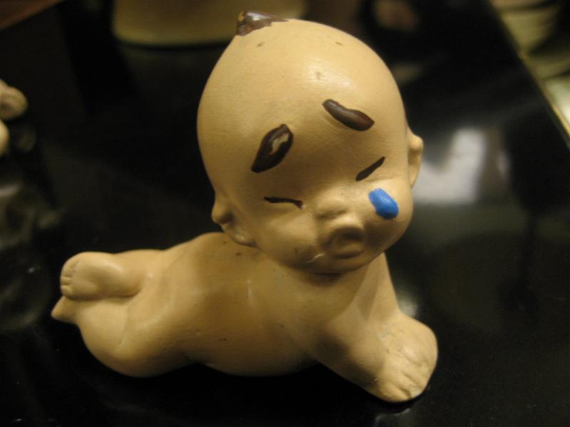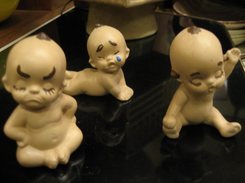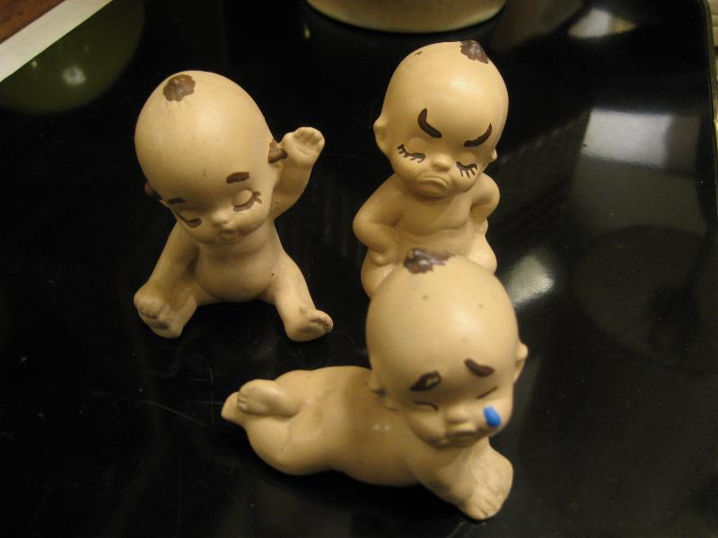 | ビンテージベビーデコセット / 50年代 USA 陶器製のベビー3体置物セット。おすわりしている子が2人とハイハイしてる子が1人で表情が寝てたり、べそかいてたり、ちょっとふくれてたりと、とってもキュート。。。 赤ちゃんの顔をよく表現していてカワイイです! キュートでGOODなビンテージデコレーションピース! |