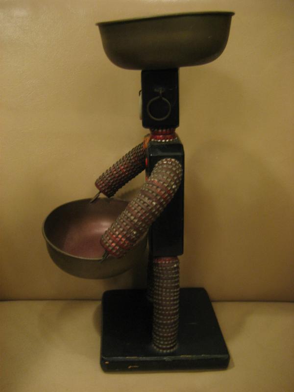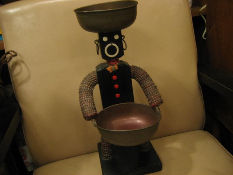 | ビンテージブラックデコ / 50年代 USA. ビンテージのブラックシェルフデコ。トップとフロントにメタルトレイ付きの置物。ウッドボディと王冠でできています。カラーはブラックボディにブラックフェイス。ディスプレイやKey・コインなど小物入れにもクールでGOODなビンテージデコレーションピース! |