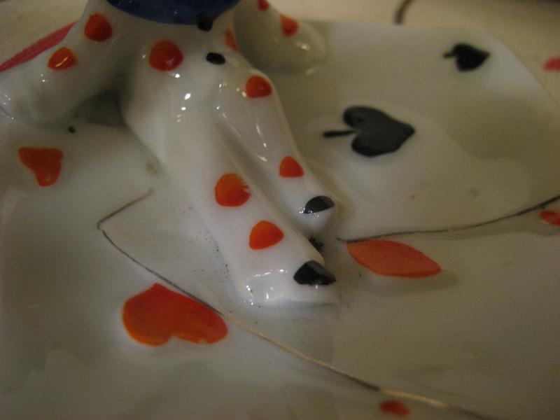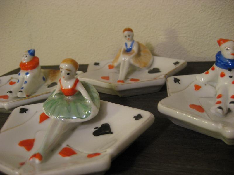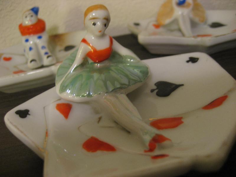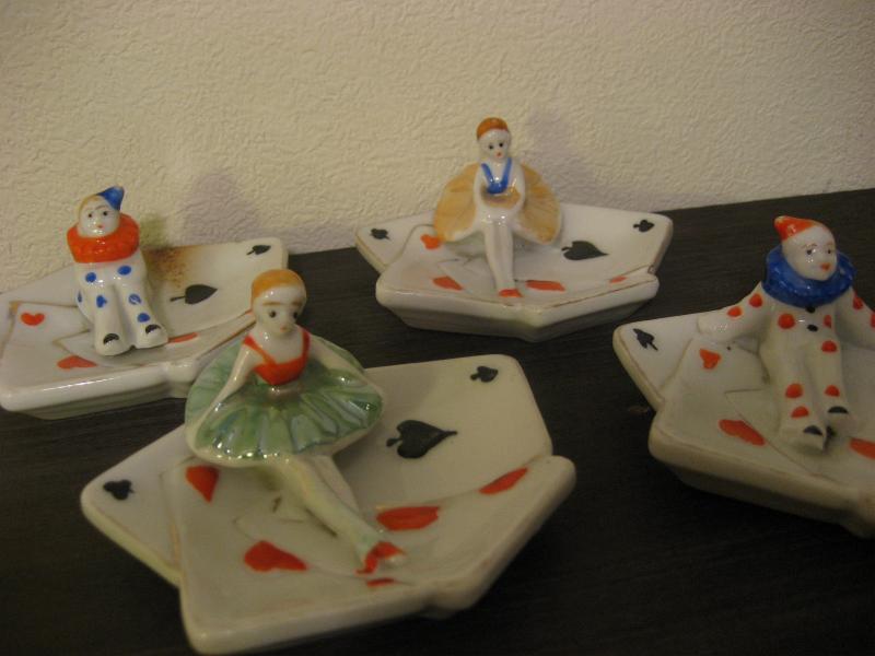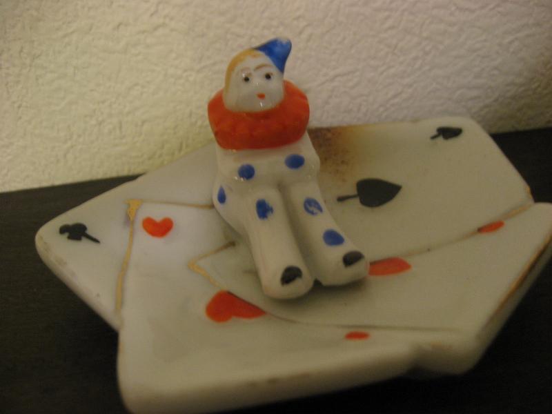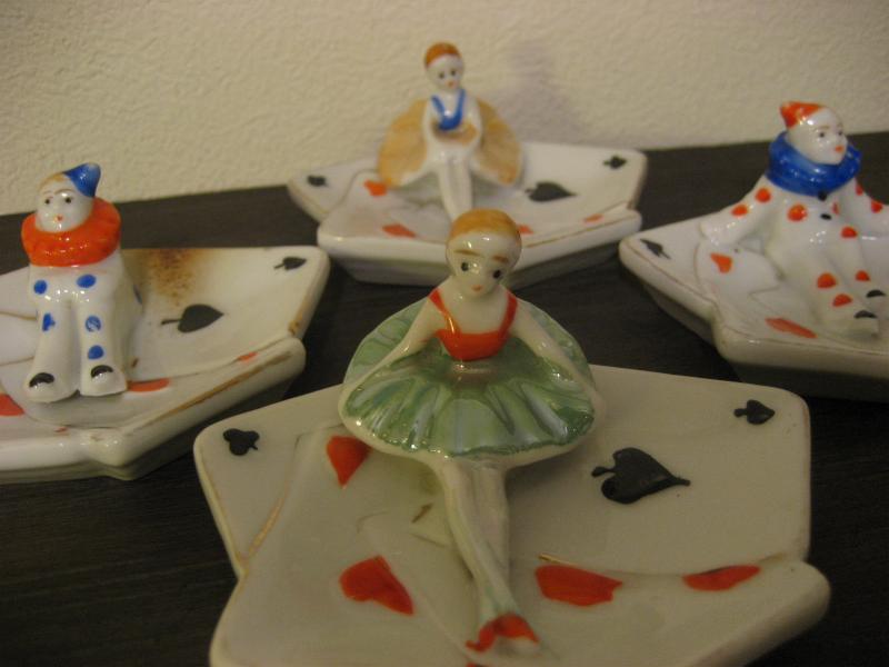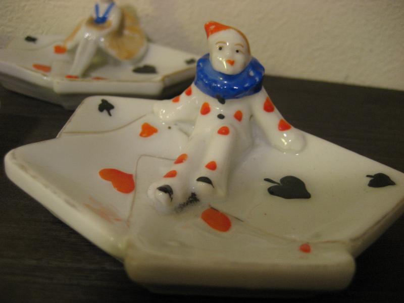 | ビンテージポーカーアッシュトレイ / 50年代 USA, MADE IN JAPAN 陶器製のトランプ絵柄の灰皿セット。それぞれ違ったポーズのピエロとバレリーナが一体になっています。その昔、ポーカーを楽しんでいる時に使っていたのでしょうか。。。 灰皿といってもコインやアクセサリーなどの小物入れなどにもおススメです。クール&キュートでGOODなビンテージコレクティブルピース! |