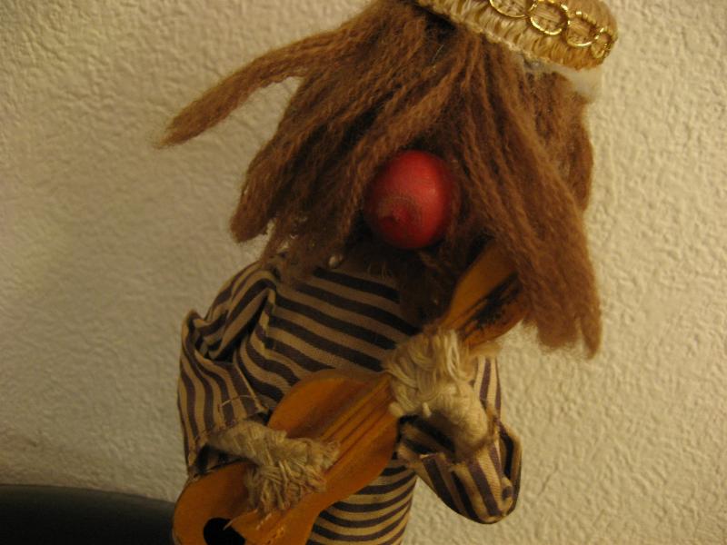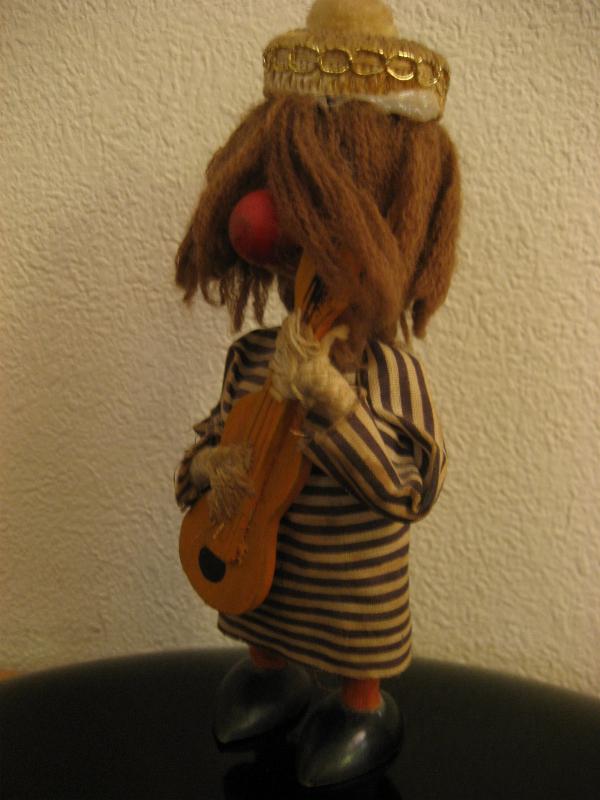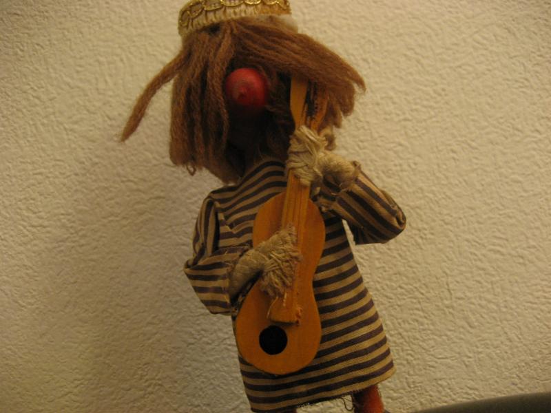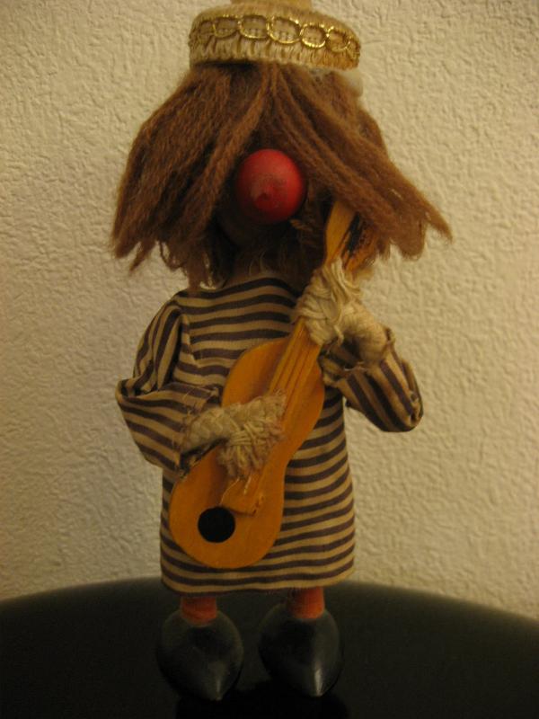 | ビンテージレトロヒッピーミュージシャン / 60-70年代 USA ウッドメイドのビンテージ置物。囚人のようなボーダーシャツスタイルにギター、傷んだ?ロン毛にハットとヒッピー丸出し。クールでビートニクなビンテージコレクティブルピース! |