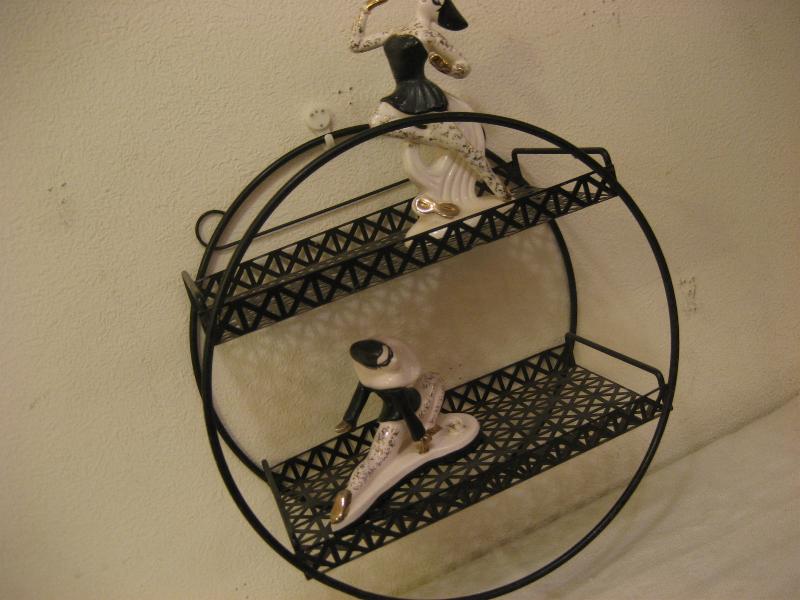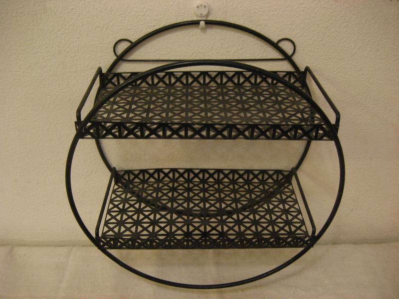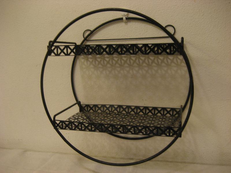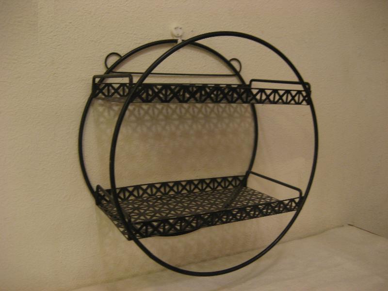 | ビンテージアイアンウォールシェルフ / 50年代 USA. ブラックアイアンフレームのラウンドシェイプ壁掛け飾り棚。アイアンのワイヤーフレームに、この時代独特のメッシュパネルシェルフ。クールでGOODなビンテージウォールピース! |