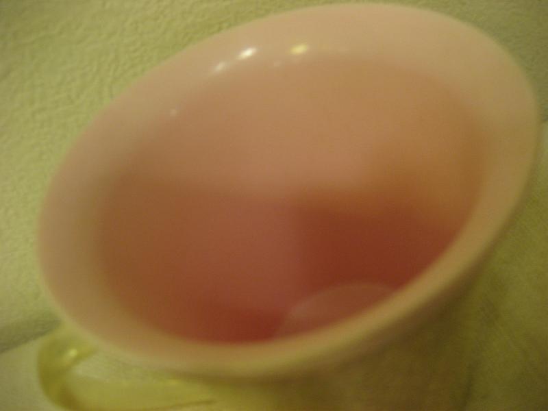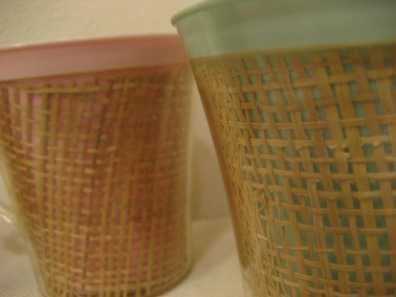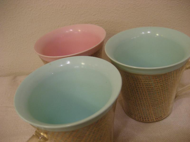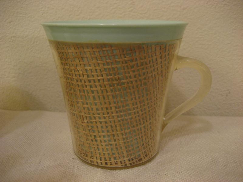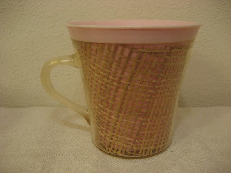 | ビンテージマグカップ / 50-60年代 USA. プラスチックメイドのビンテージマグカップ。インサイドカラーはピンクとミントグリーンの2色あり。アウトサイドとハンドルはクリアで内側バーラップ封じ込めタイプ。プラスチックメイドなので手軽に使えてキュートなビンテージテーブルウェア! |