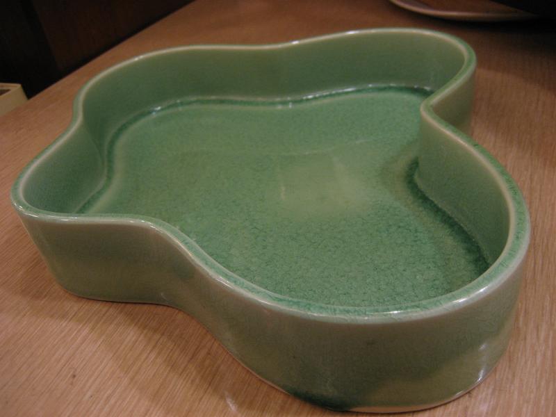 | ビンテージアトミックブーメランディッシュ / 50-60年代 USA. "ヘディスクープ" ライクなブーメランシェイプの陶器製ラージサイズディッシュ。クールなミントグリーンカラー。ディスプレイやプランターなどにクールでGOODなビンテージテーブルピース! |