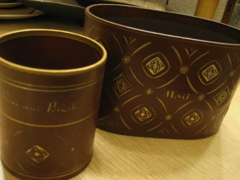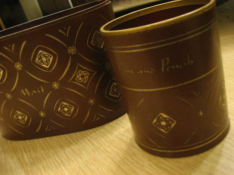 | ビンテージメール&ペンホルダーセット / 50-60年代 USA. レアなアトミック絵柄のプリントされたビニルレザー張りのペンホルダーとメールストックのセット。カラーは渋めのダークブラウンにゴールドアトミックプリント。クールでGOODなビンテージコレクティブルピース! |