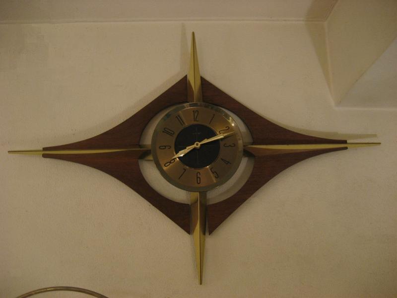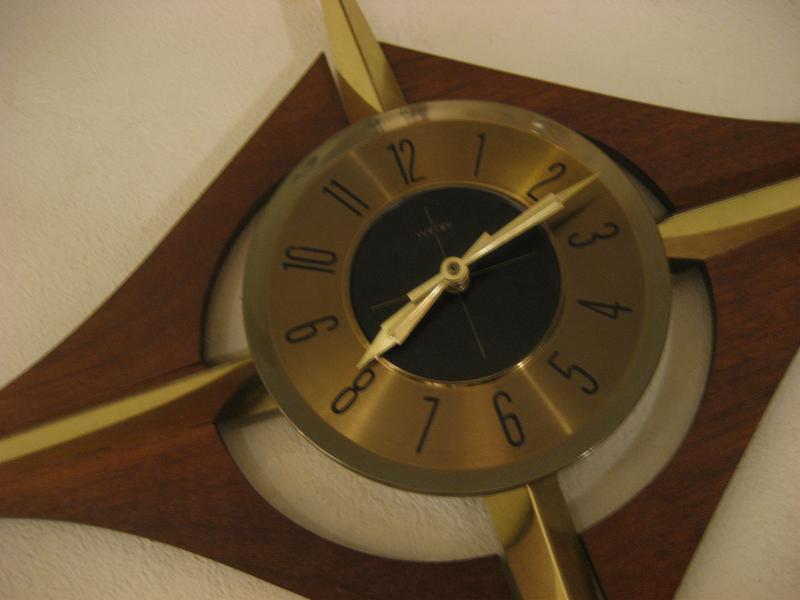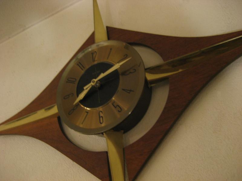 | ビンテージスターバーストウォールクロック / 50-60年代 Welby, USA. ミッドセンチュリーを代表する時計メーカー、ウェルビー社製のアトミックでモダンな壁掛け時計。ゴールドスタースポークにウッドメイドのブーメランアクセントデコ。文字盤はゴールドベースにブラックセンタータイプでオリジナルゴールドハンド。クールでGOODなビンテージタイムピース! ムーブメントはバッテリータイプ(単3x1個使用)に交換済みですので時間も正確です。 |