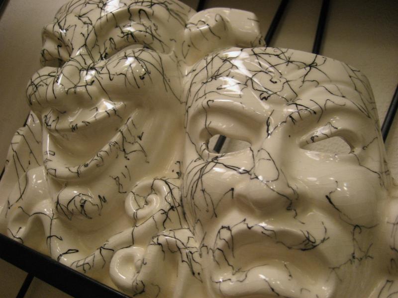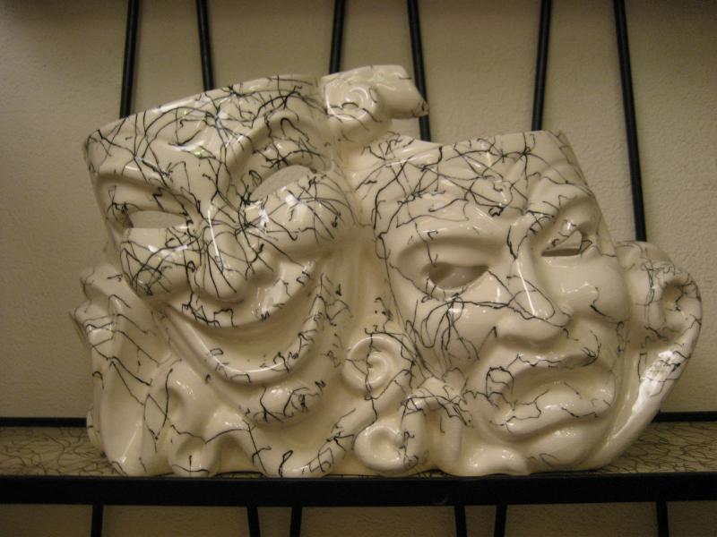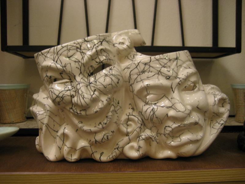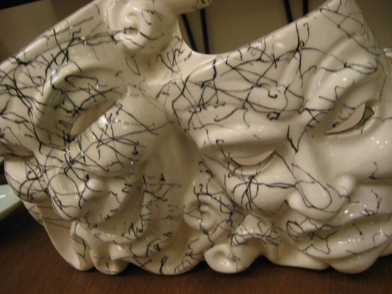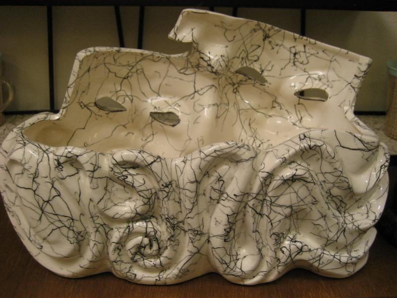 | ビンテージツーフェイスプランターデコ / 50年代 USA. 陶器製泣き笑いのプラントポットタイプ。TVランプなどと同タイプで当時は平行して販売されていたようです。ポット内側に電球ソケットを入れてTVランプ風にして楽しむのもおススメ。。。 カラーはホワイトフェイスベースにブラックドレーピングアクセントがクールでGOODなビンテージデコレーションピース! |