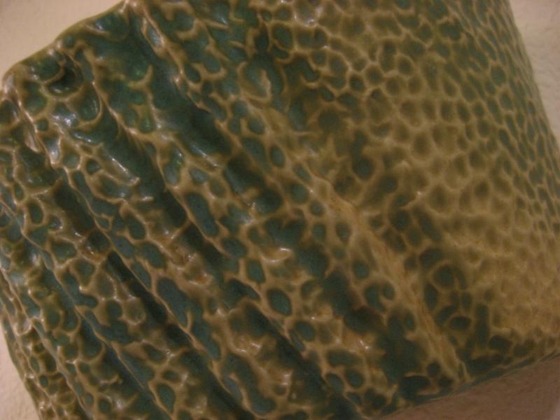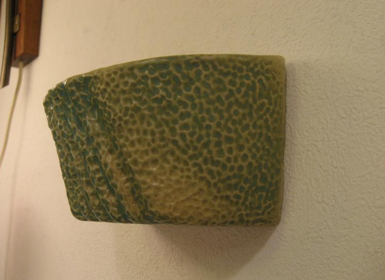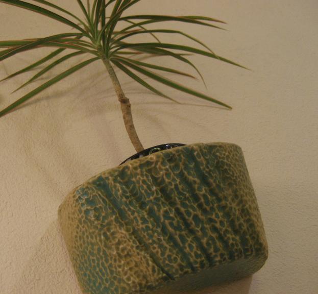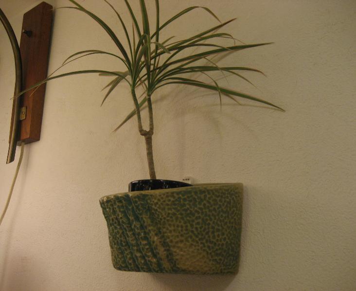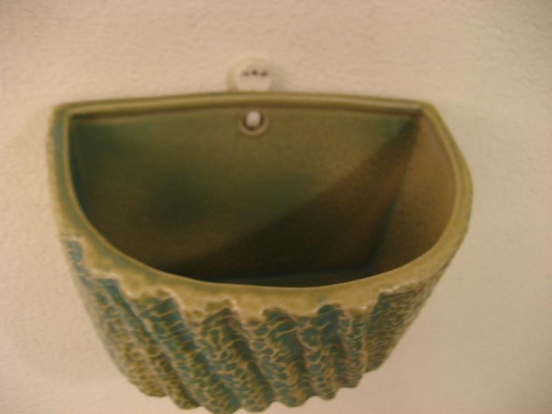 | ビンテージウォールプランター / 60-70年代 USA 壁掛けタイプのプラントポット。グリーンとベージュのマダラ模様?のような感じでフロントに数本の凹凸ストライプ。ディスプレイ性が高く、シンプルモダンでGOODなビンテージウォールデコレーションピース! |
