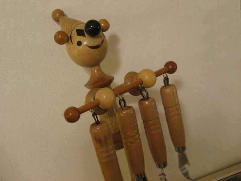 | ビンテージピエロ BARウェアセット / 70-80年代 USA ウッドメイドのピエロシェイプホームバーセット。栓抜きやコルクオープナー・缶切りなどがピエロの持っているバトンから吊り下げてあるタイプでBARカウンターやサイドボードトップなどにディスプレイ! キュートでGOODなビンテージコレクティブルピース! |
